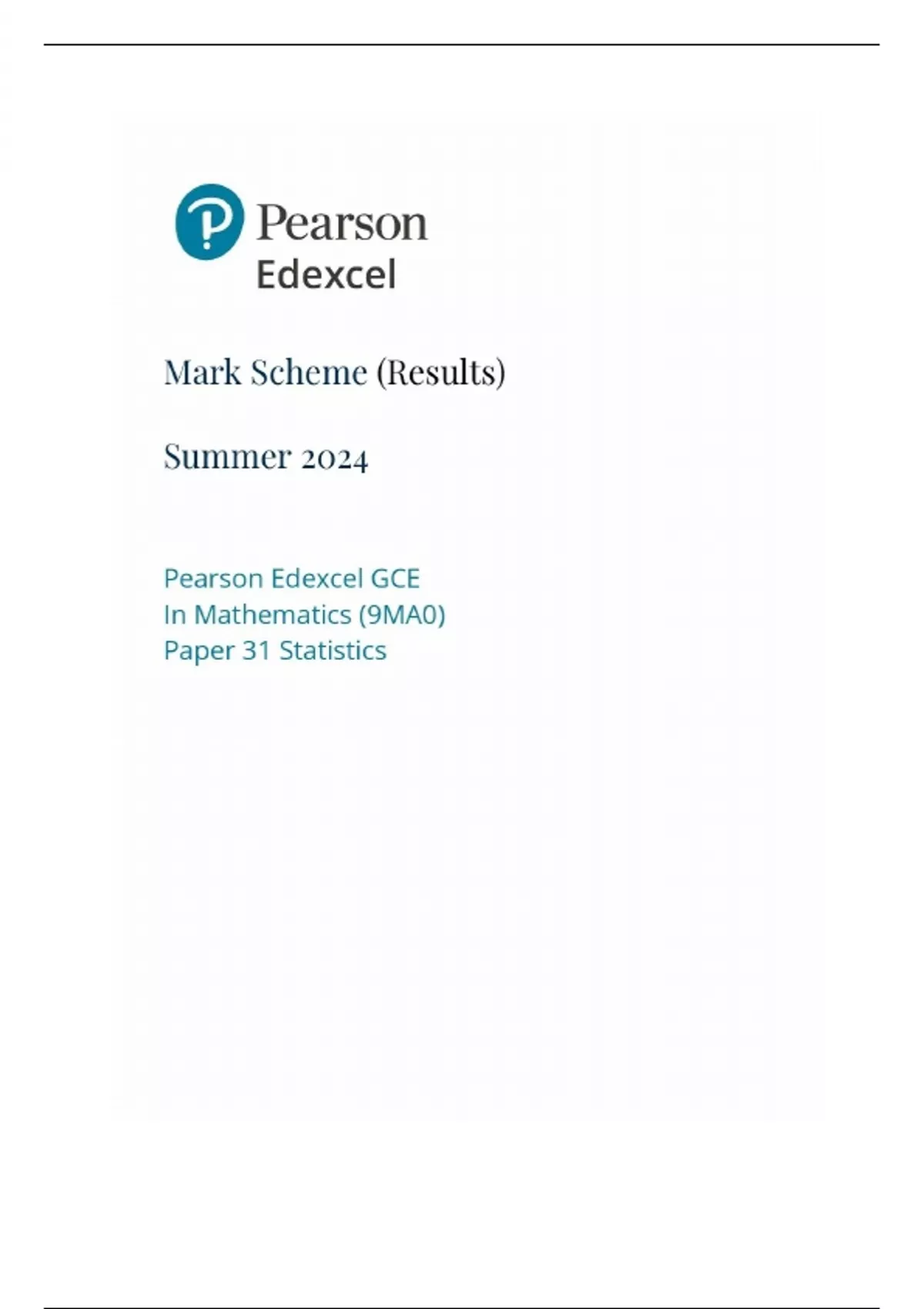 EDEXCEL GCSE 2024 MATHEMATICS (9MAO) PAPER 31 STATISTICS MS RESULTS