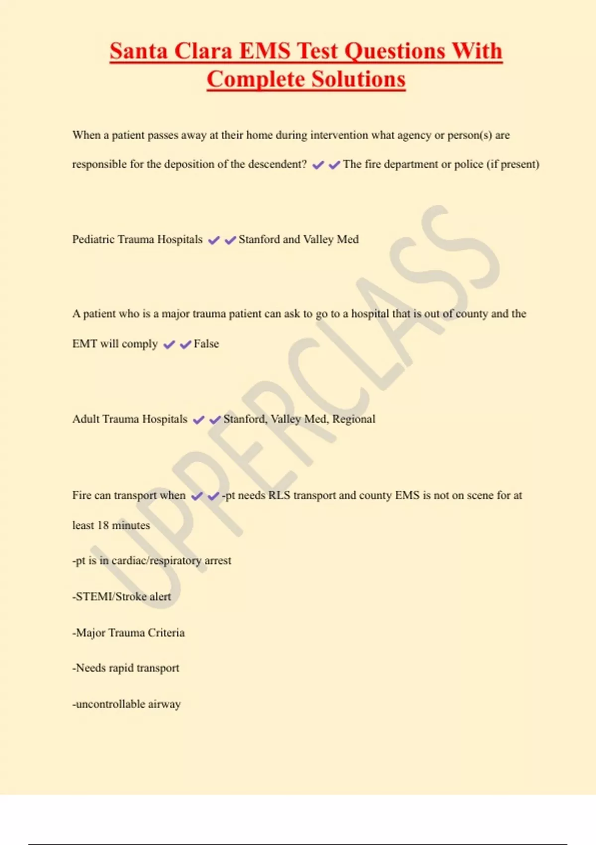 , Santa Clara EMS Test Questions With