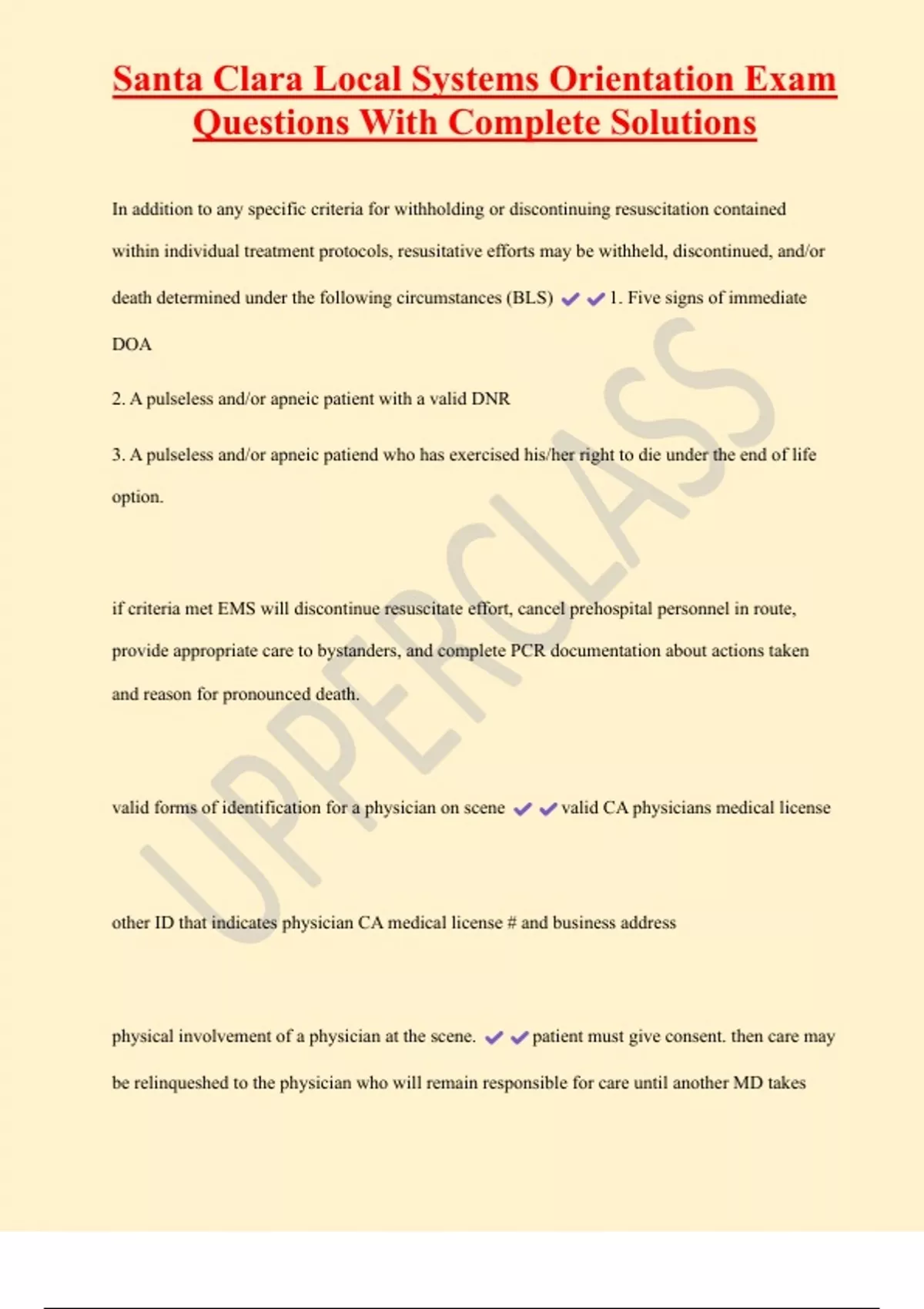 , Santa Clara Local Systems Orientation Exam
