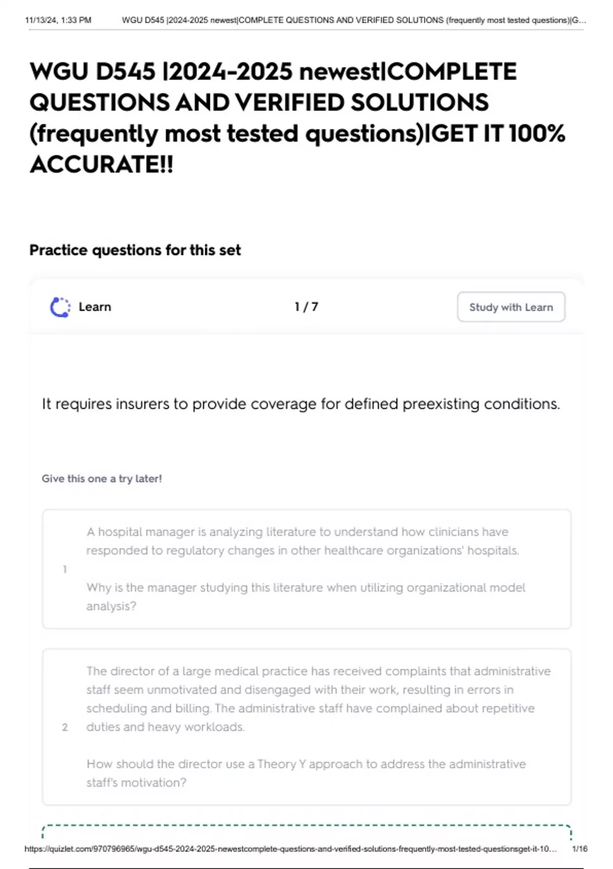 , 11/13/24, 1:33 PM WGU D545 |2024-2025 newest|COMPLETE QUESTIONS AND VERIFIED SOLUTIONS (frequently most tested questions)|G…