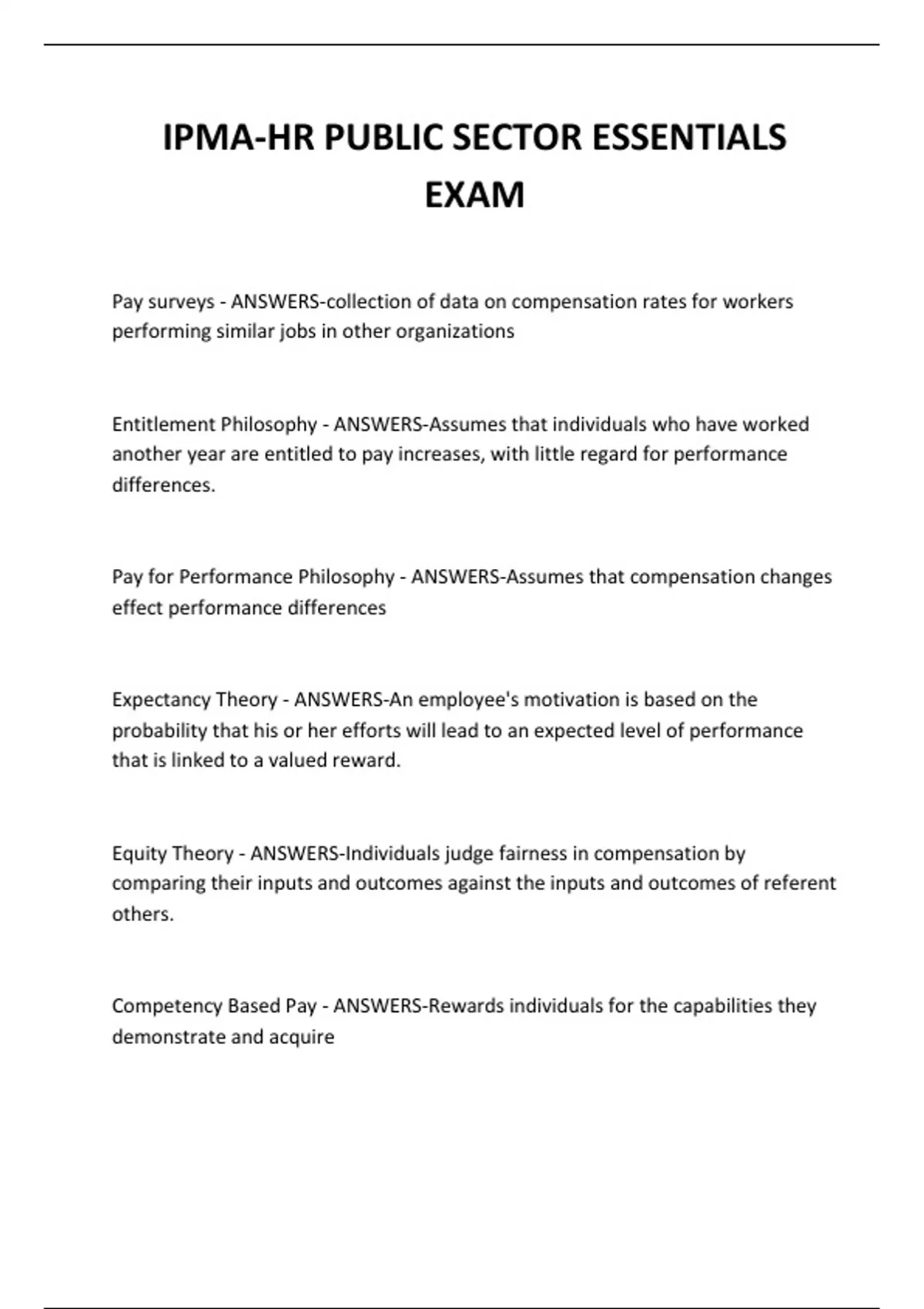 IPMA-HR PUBLIC SECTOR ESSENTIALS EXAM QUESTIONS AND ANSWERS 2024