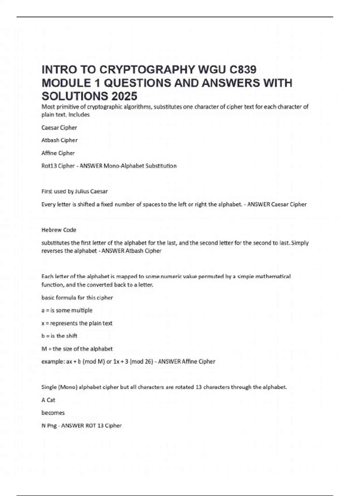 INTRO TO CRYPTOGRAPHY WGU C839 MODULE 1 QUESTIONS AND ANSWERS WITH SOLUTIONS 2025