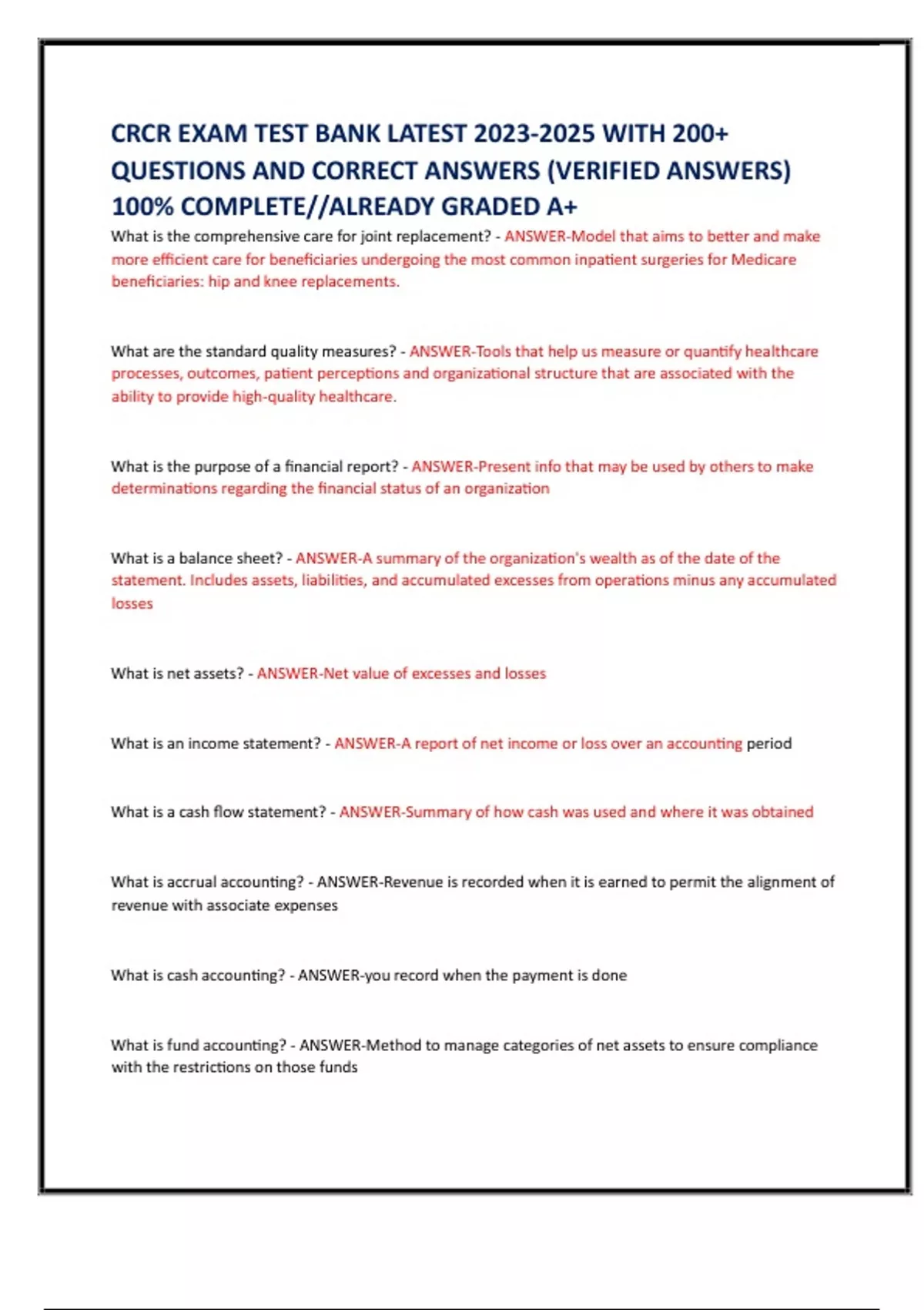 QUESTIONS AND CORRECT ANSWERS (VERIFIED ANSWERS)