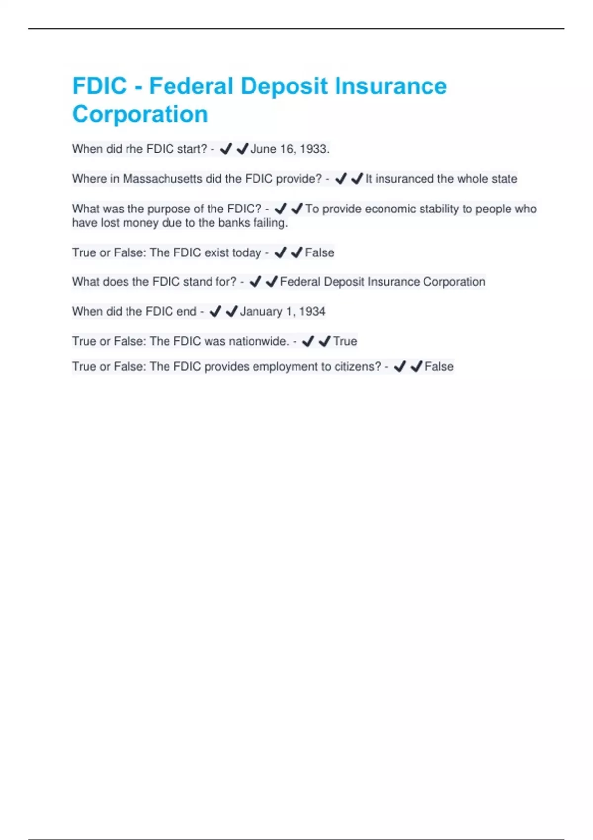 When did the FDIC end - ✔️✔️January 1, 1934