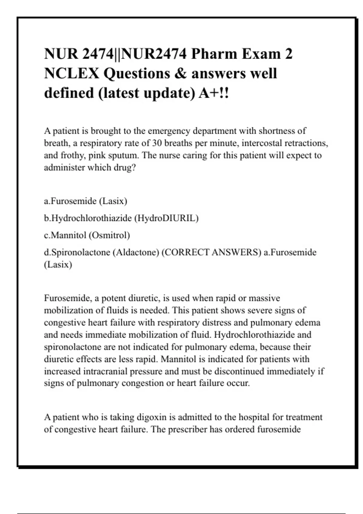 d.Spironolactone (Aldactone) (CORRECT ANSWERS) a.Furosemide