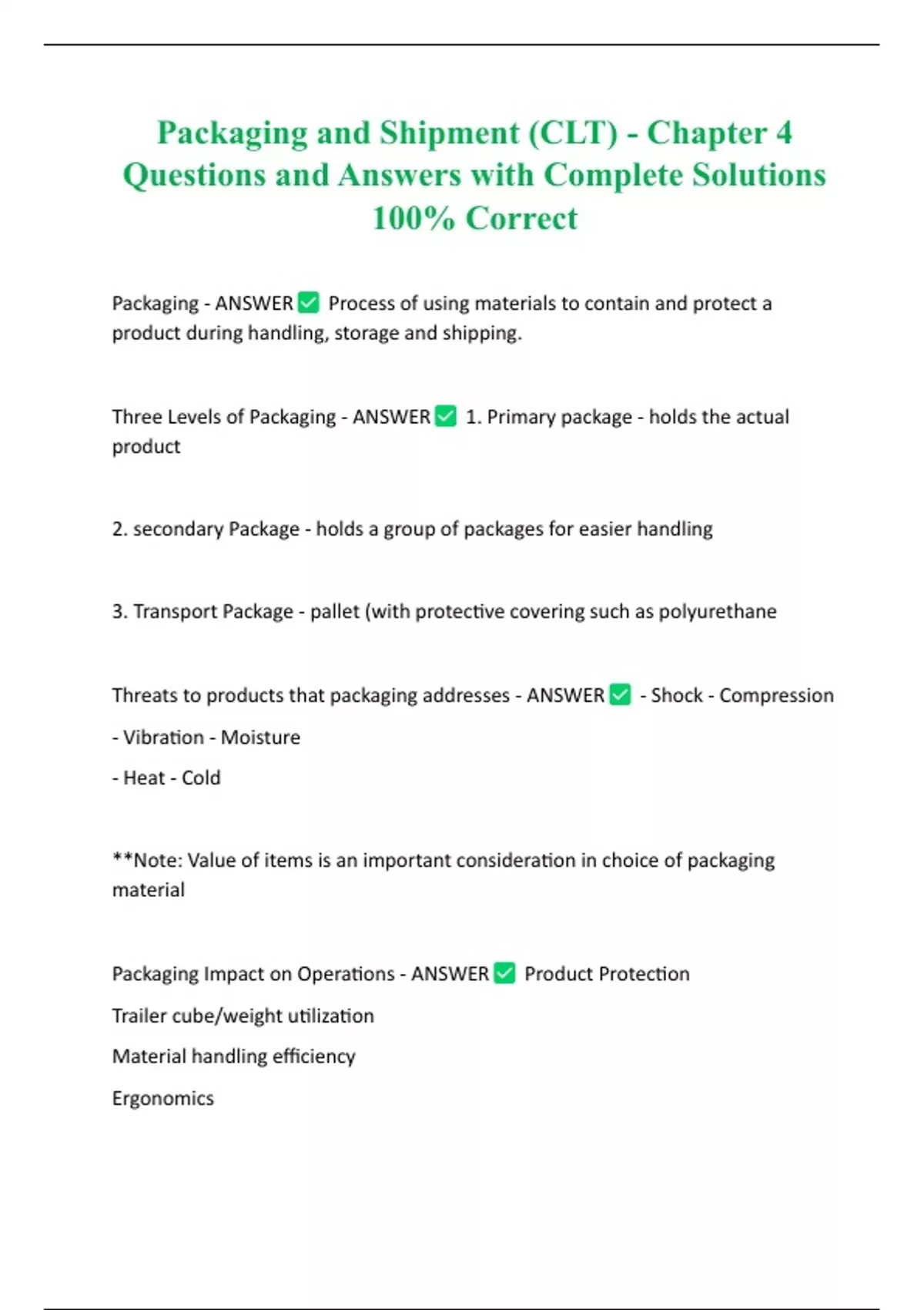 Packaging Impact on Operations - ANSWER Product Protection