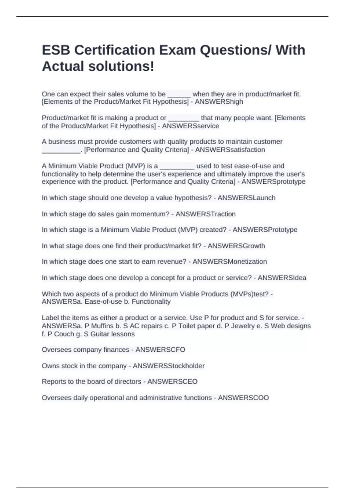 [Elements of the Product/Market Fit Hypothesis] - ANSWERShigh