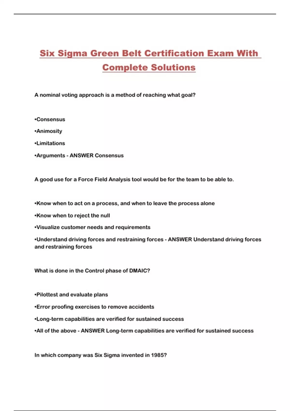 •Steps to certification as a Green Belt - ANSWER More specific and varied steps in the