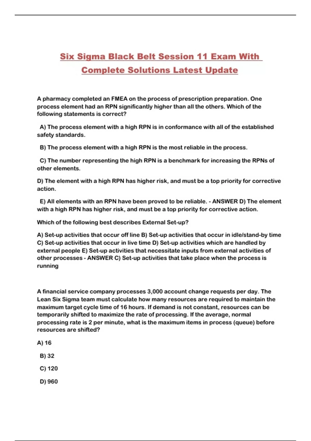 Six Sigma Black Belt Session 11 Exam With Complete Solutions Latest Update