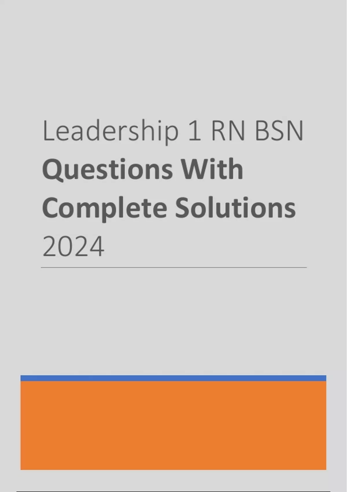 Leadership 1 RN BSN Questions With Complete Solutions 2024