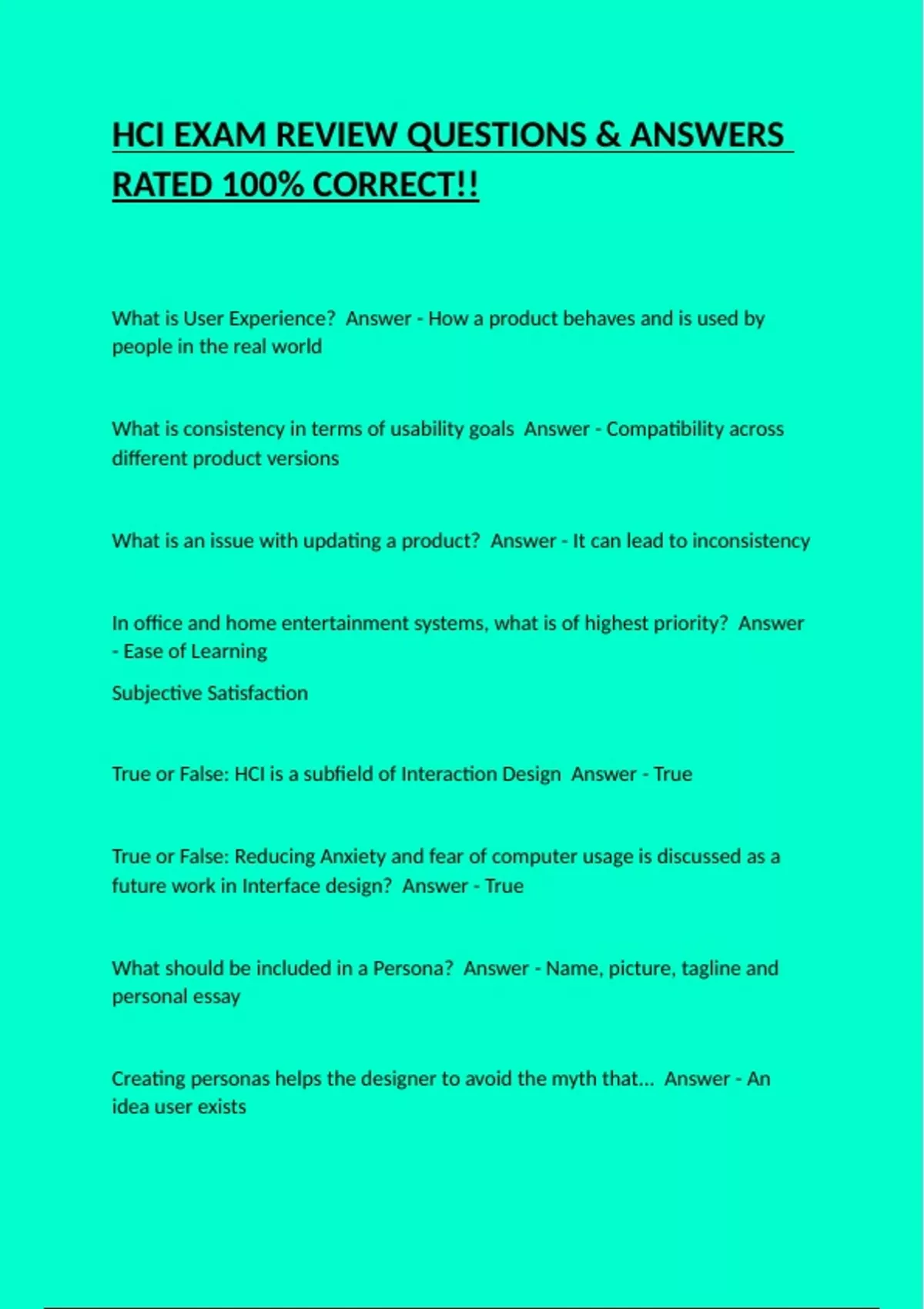 HCI EXAM REVIEW QUESTIONS & ANSWERS