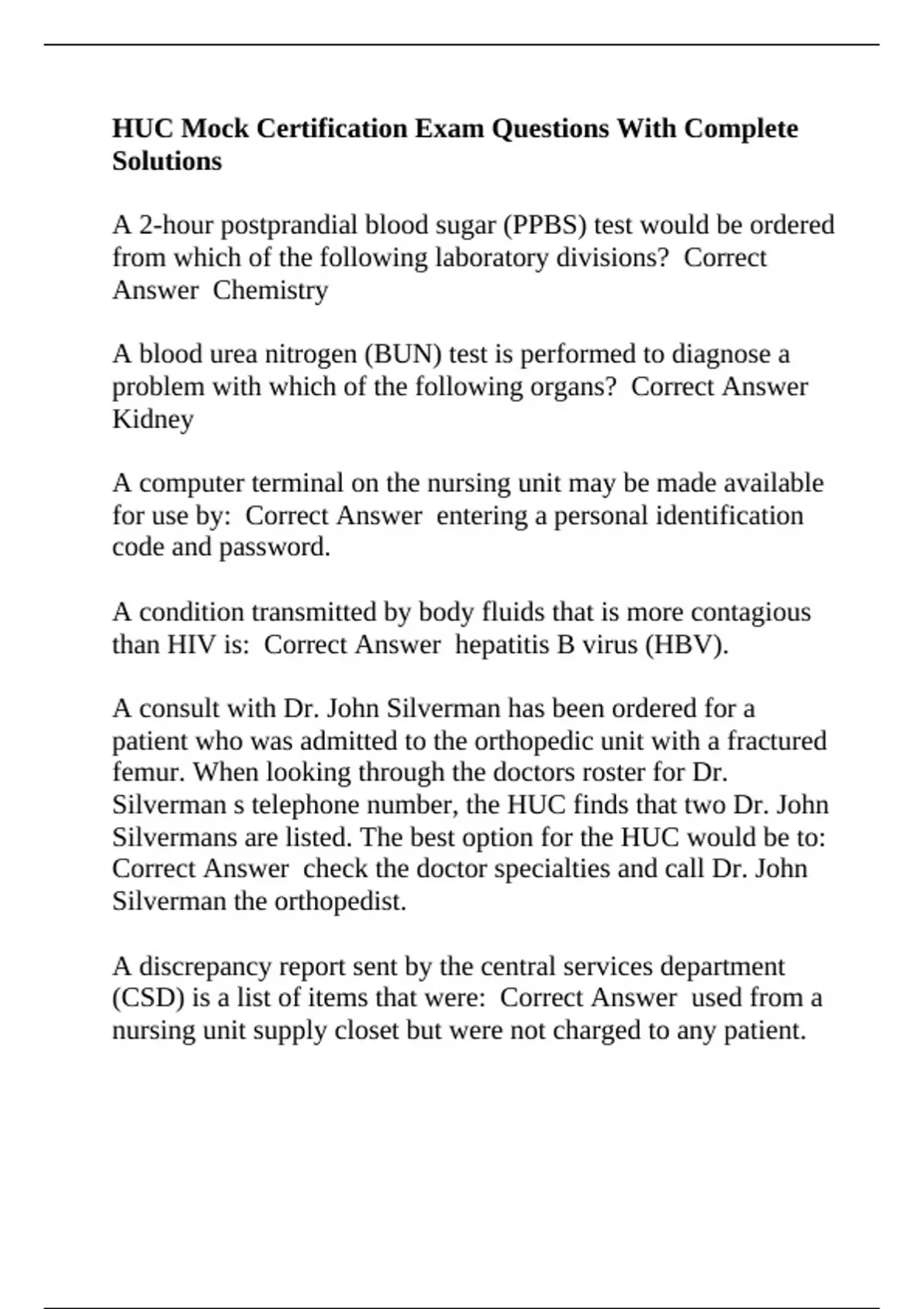 require the HUC to prepare a consent for a(n): Correct Answer