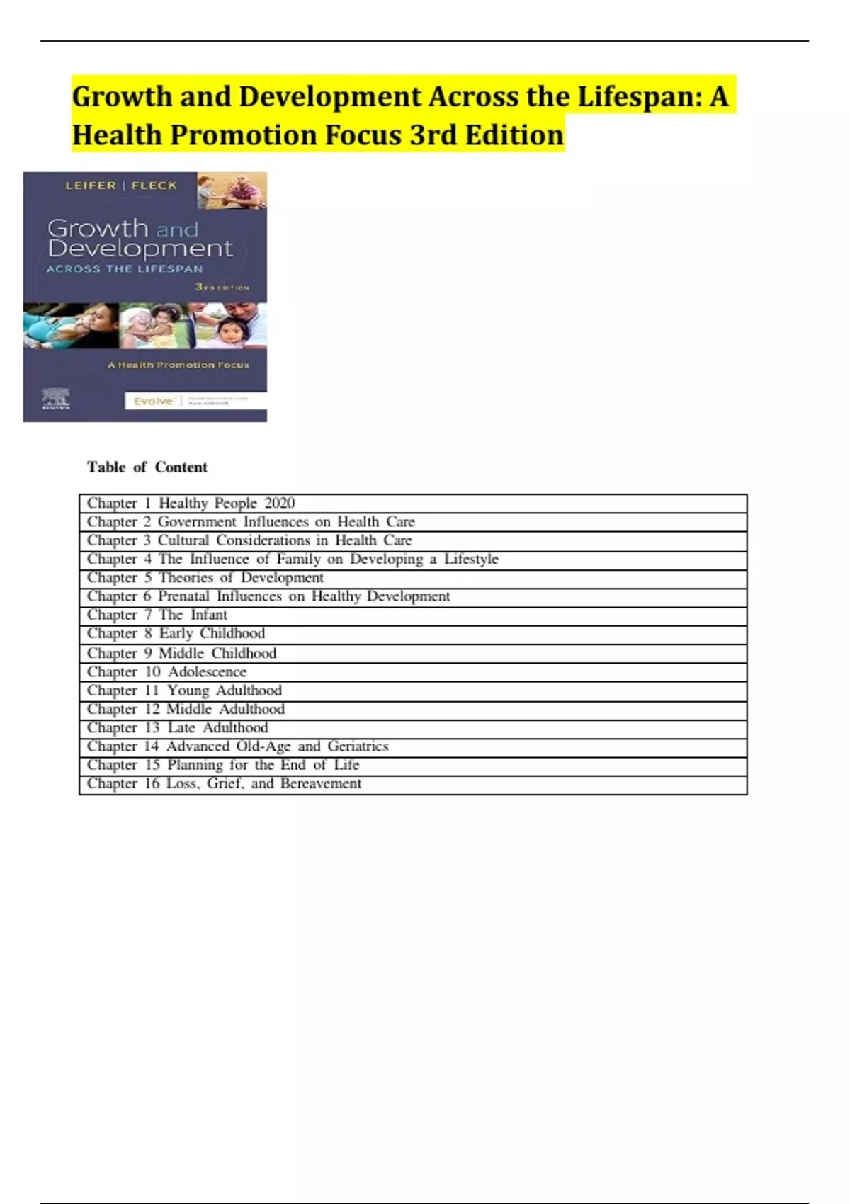 Growth and Development Across the Lifespan 3rd Edition TEST BANK By Gloria Leifer; All Chapters 1 - 16 complete Verified editon ISBN: 9780323809405| newest edition 2024|2025