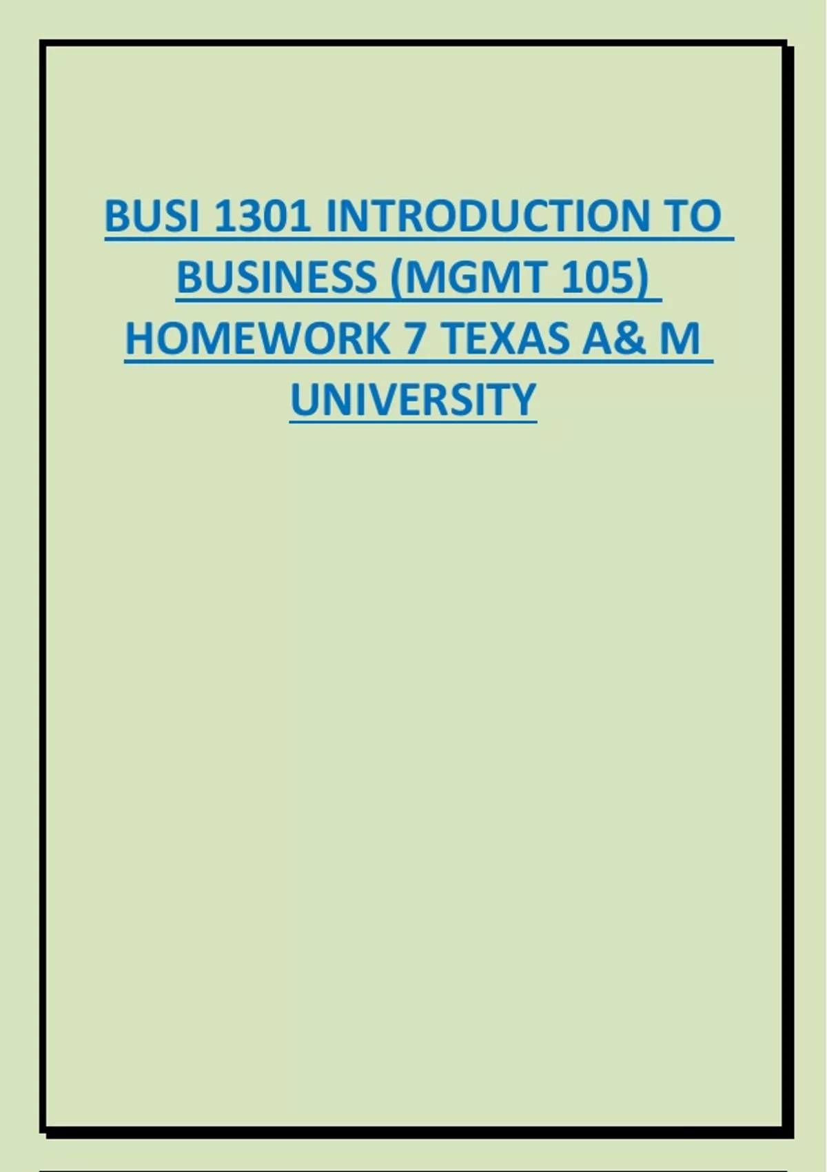 BUSI 1301 INTRODUCTION TO BUSINESS (MGMT 105) HOMEWORK 7 TEXAS A& M UNIVERSITY