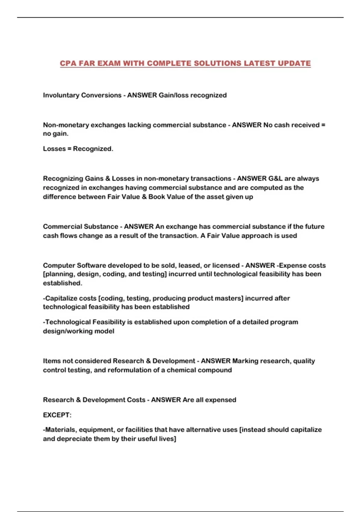 CPA FAR EXAM WITH COMPLETE SOLUTIONS LATEST UPDATE