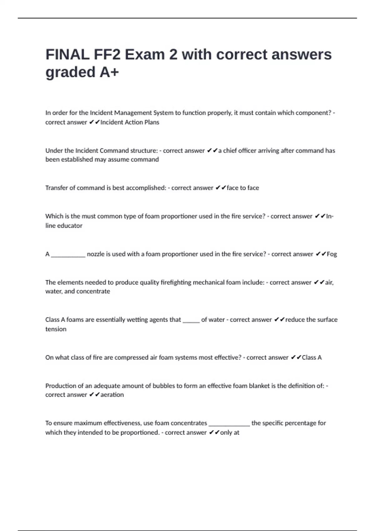 The elements needed to produce quality firefighting mechanical foam include: - correct answer ✔✔air,