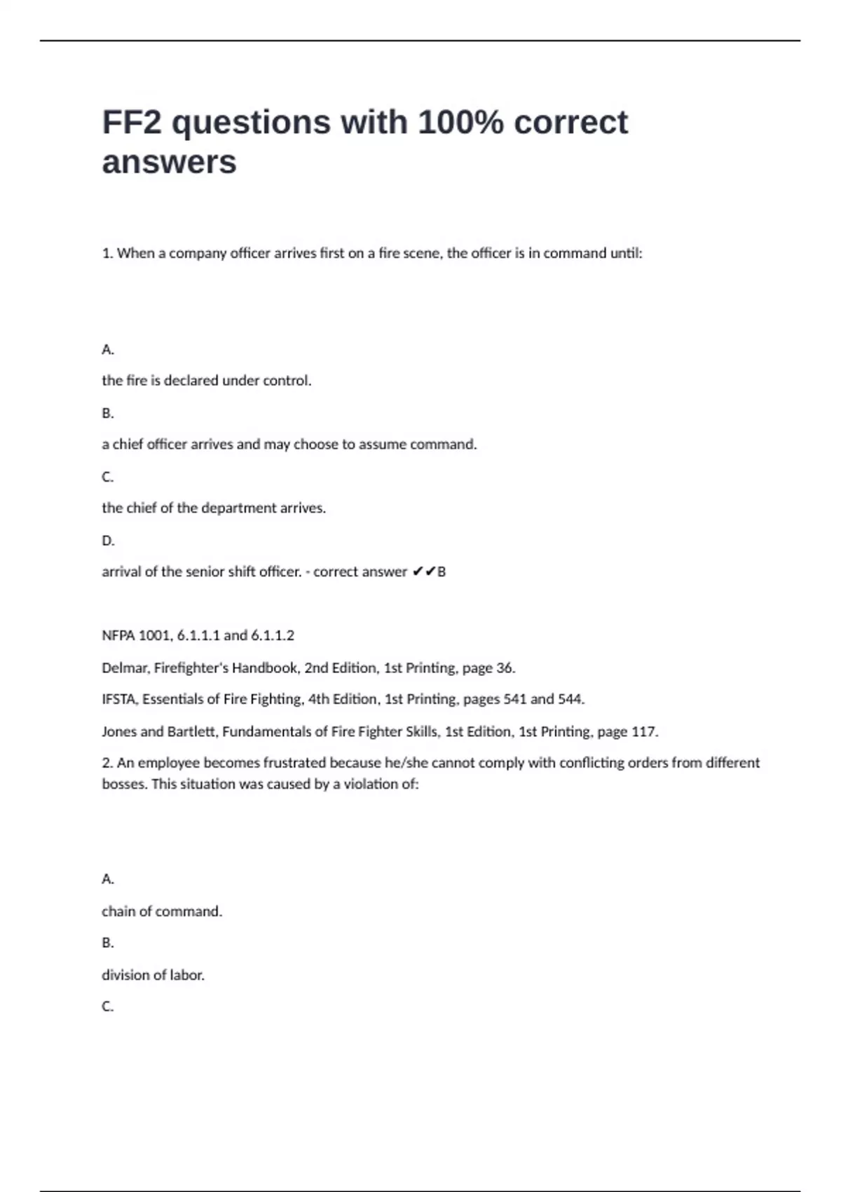 unity of command. - correct answer ✔✔D