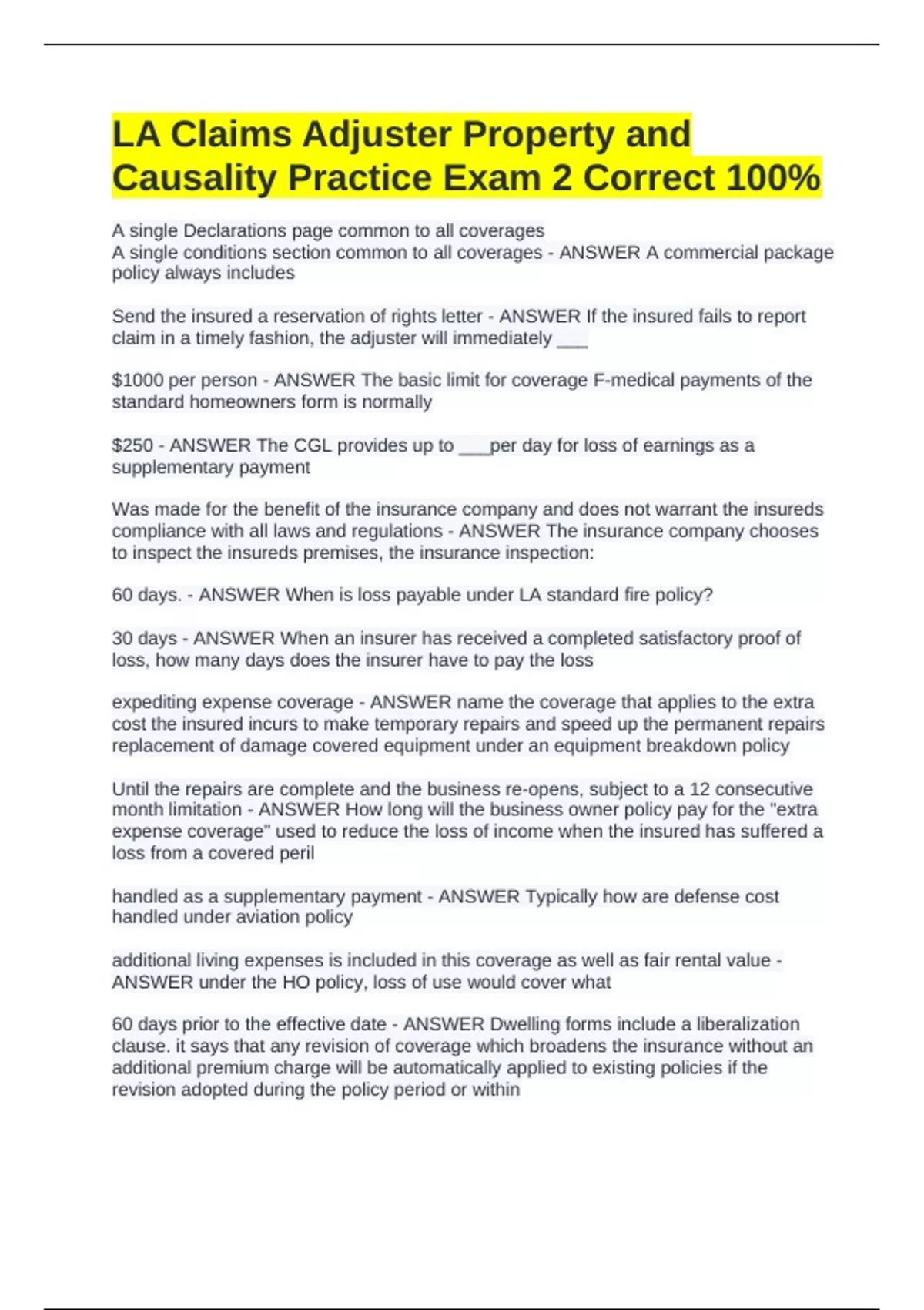 180 - ANSWER A catastrophe or emergency claims adjuster license in LA will be