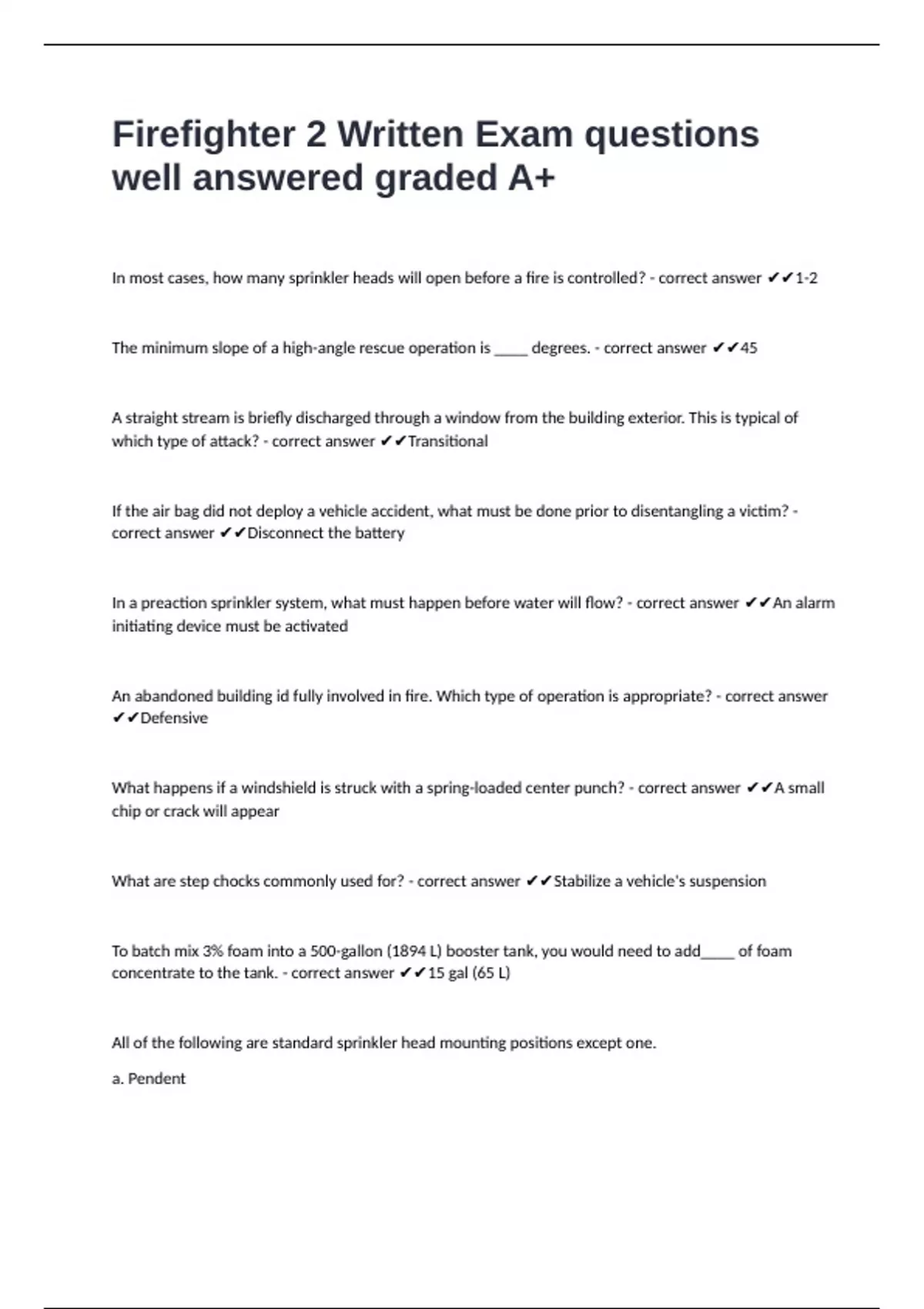 Firefighter 2 Written Exam questions well answered graded A+