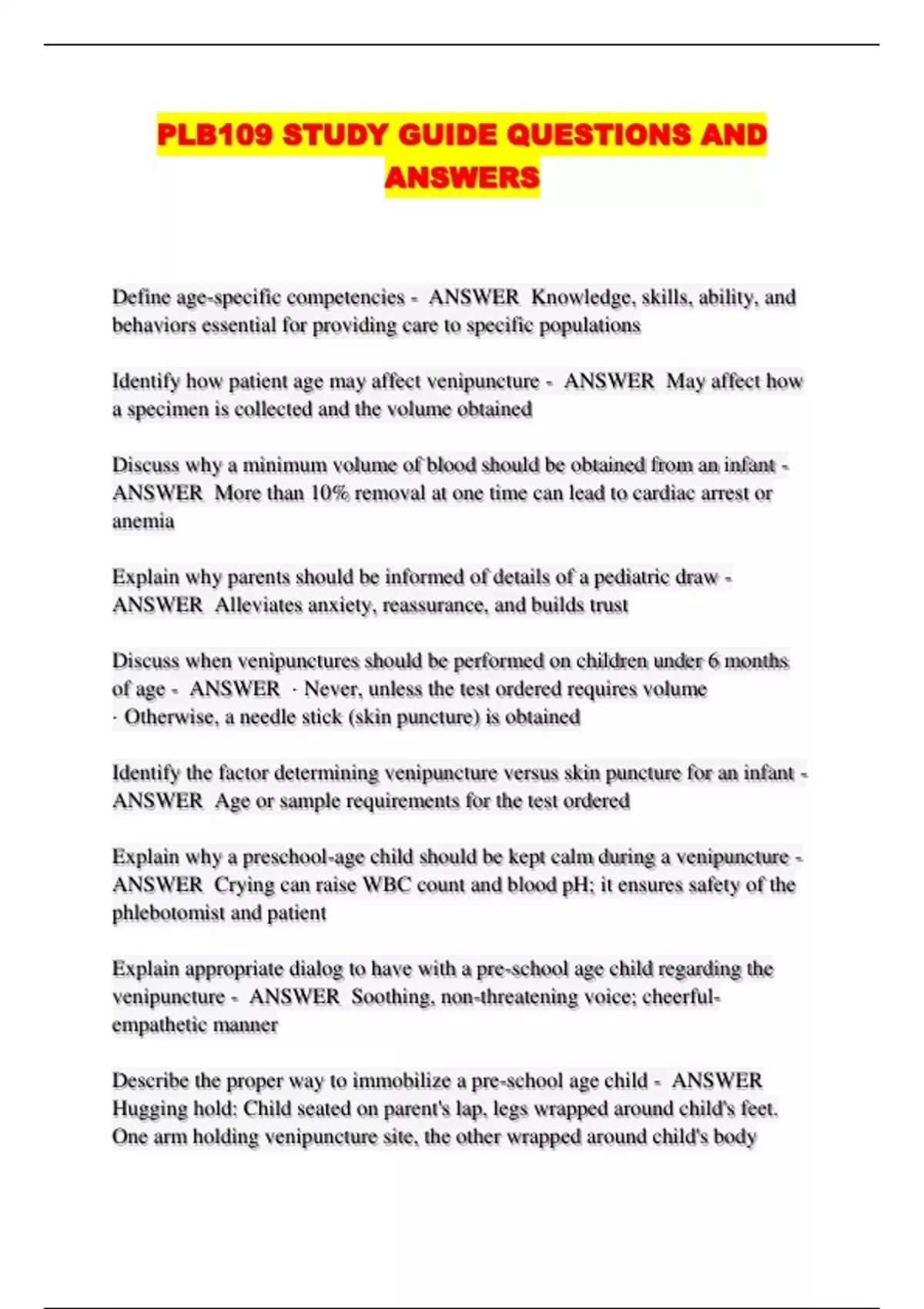 Identify how patient age may affect venipuncture - ANSWER May affect how
