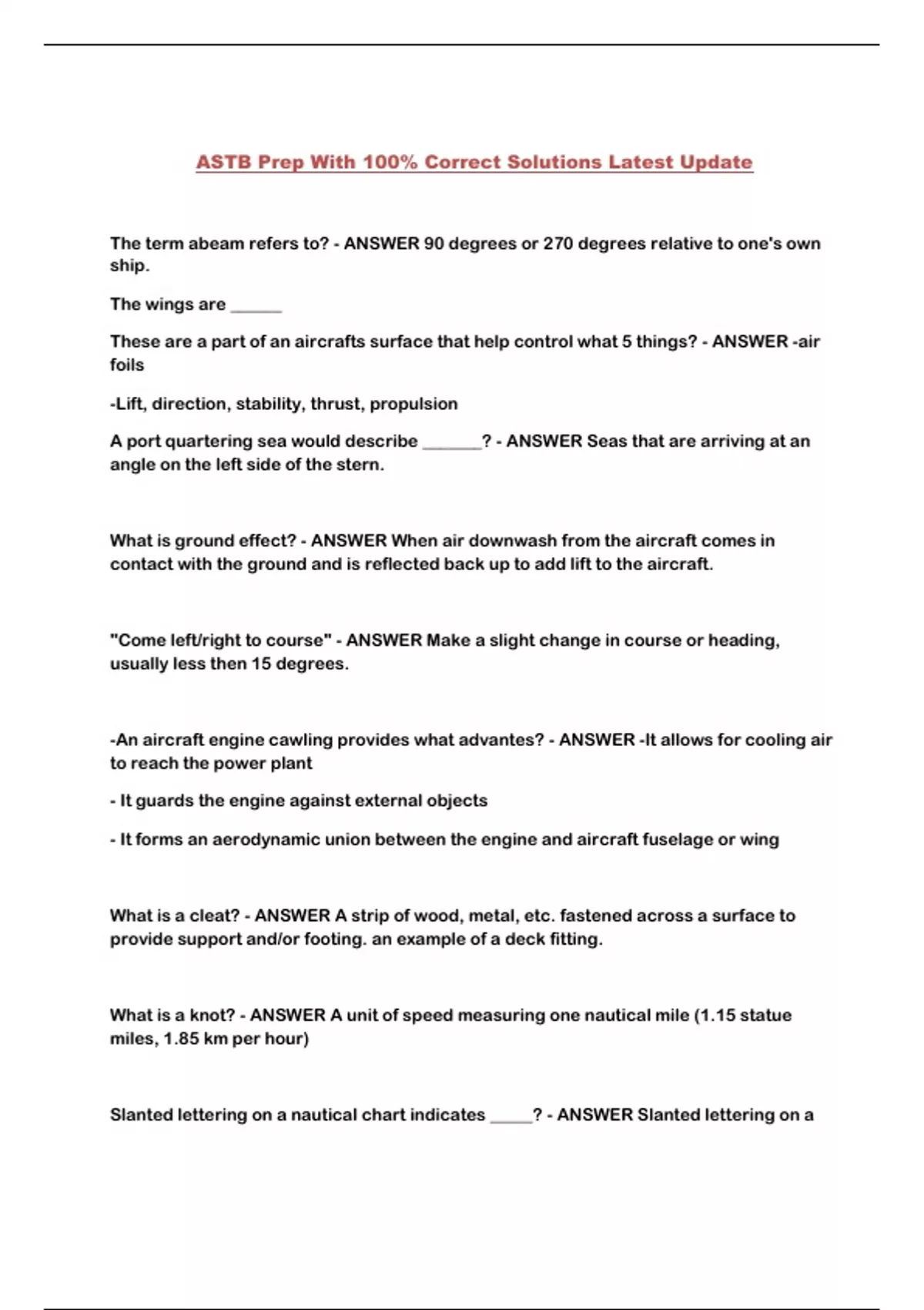 The term abeam refers to? - ANSWER 90 degrees or 270 degrees relative to one's own