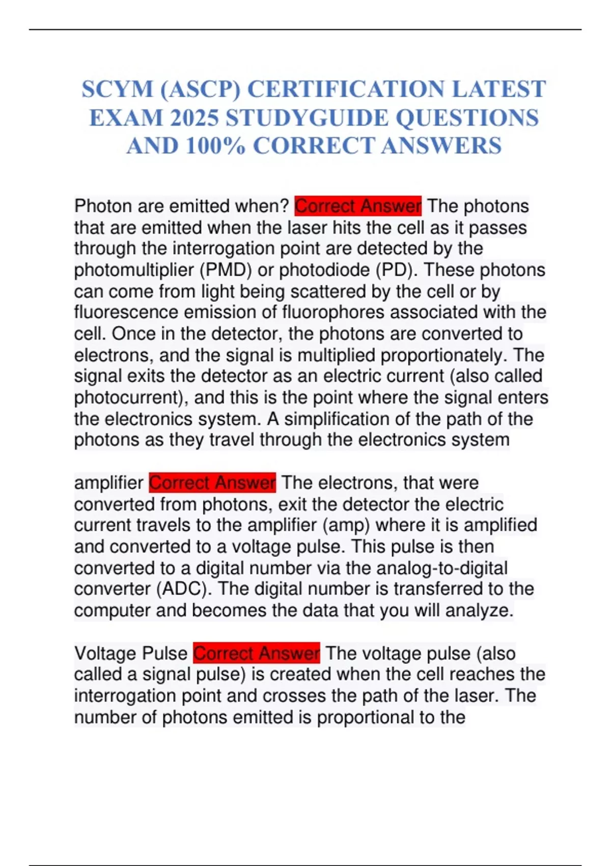 SCYM (ASCP) CERTIFICATION LATEST EXAM 2025 STUDYGUIDE QUESTIONS AND 100% CORRECT ANSWERS