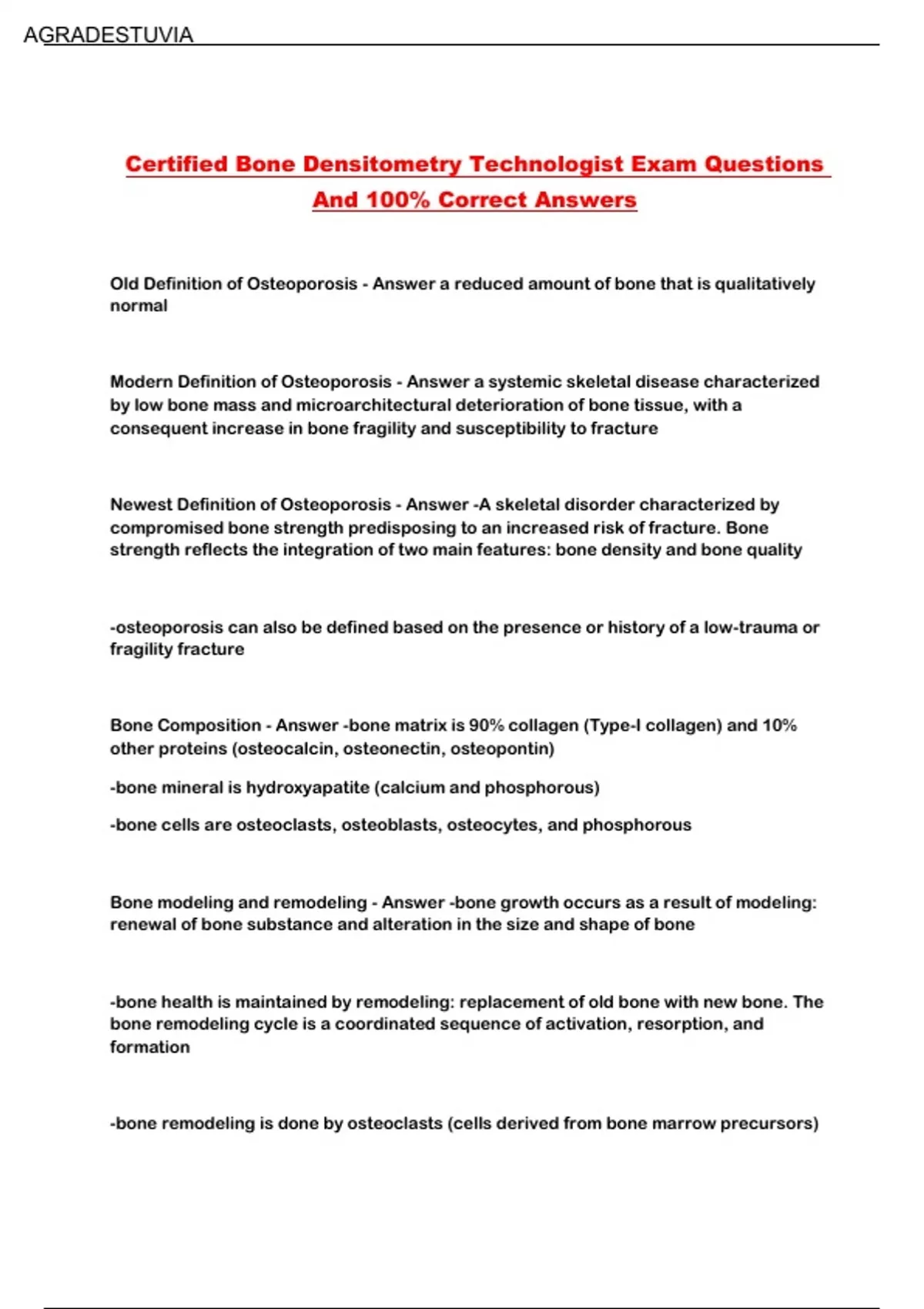 Newest Definition of Osteoporosis - Answer -A skeletal disorder characterized by