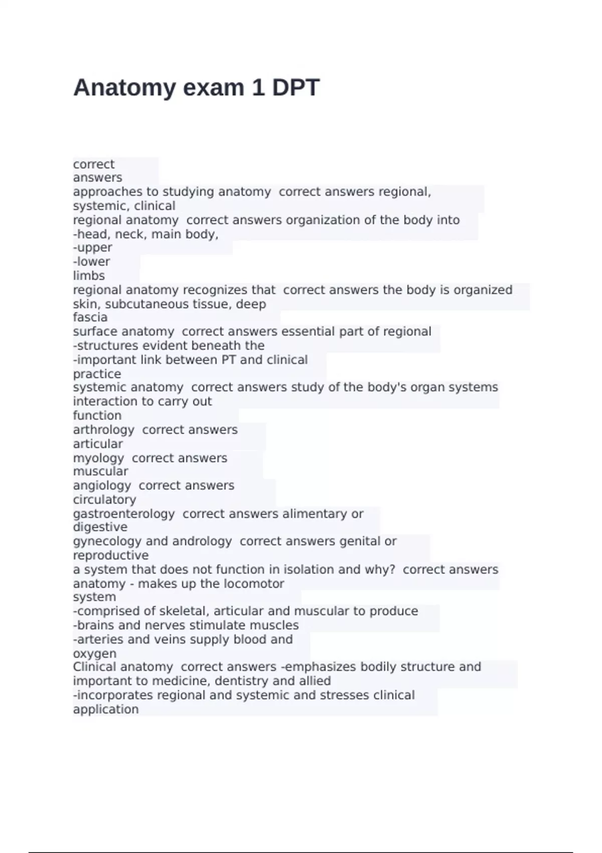 Anatomy exam 1 DPT with ccorrect answers 2024