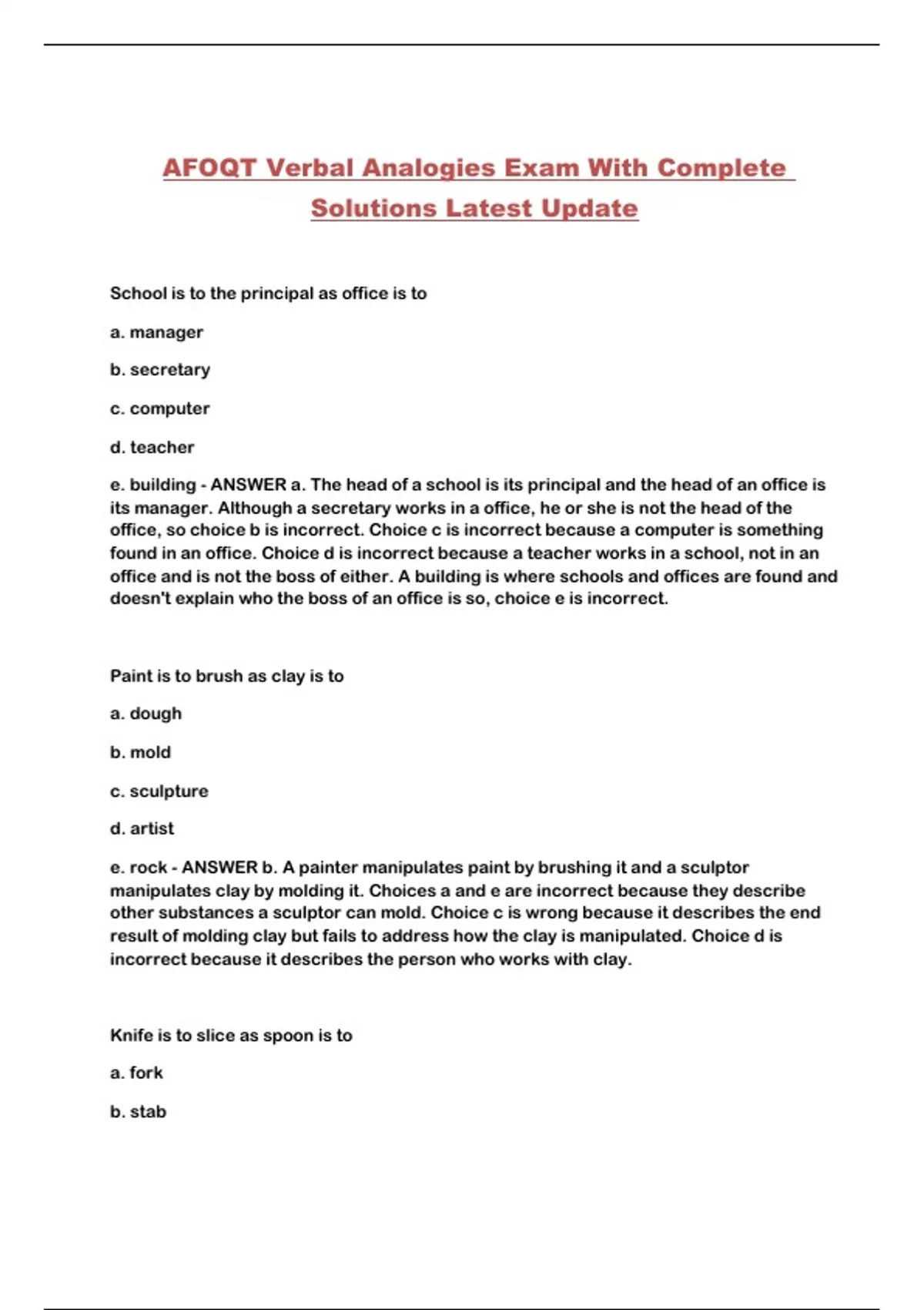 e. handle - ANSWER c. A knife serves to slice and a spoon to stir. Choice a is incorrect