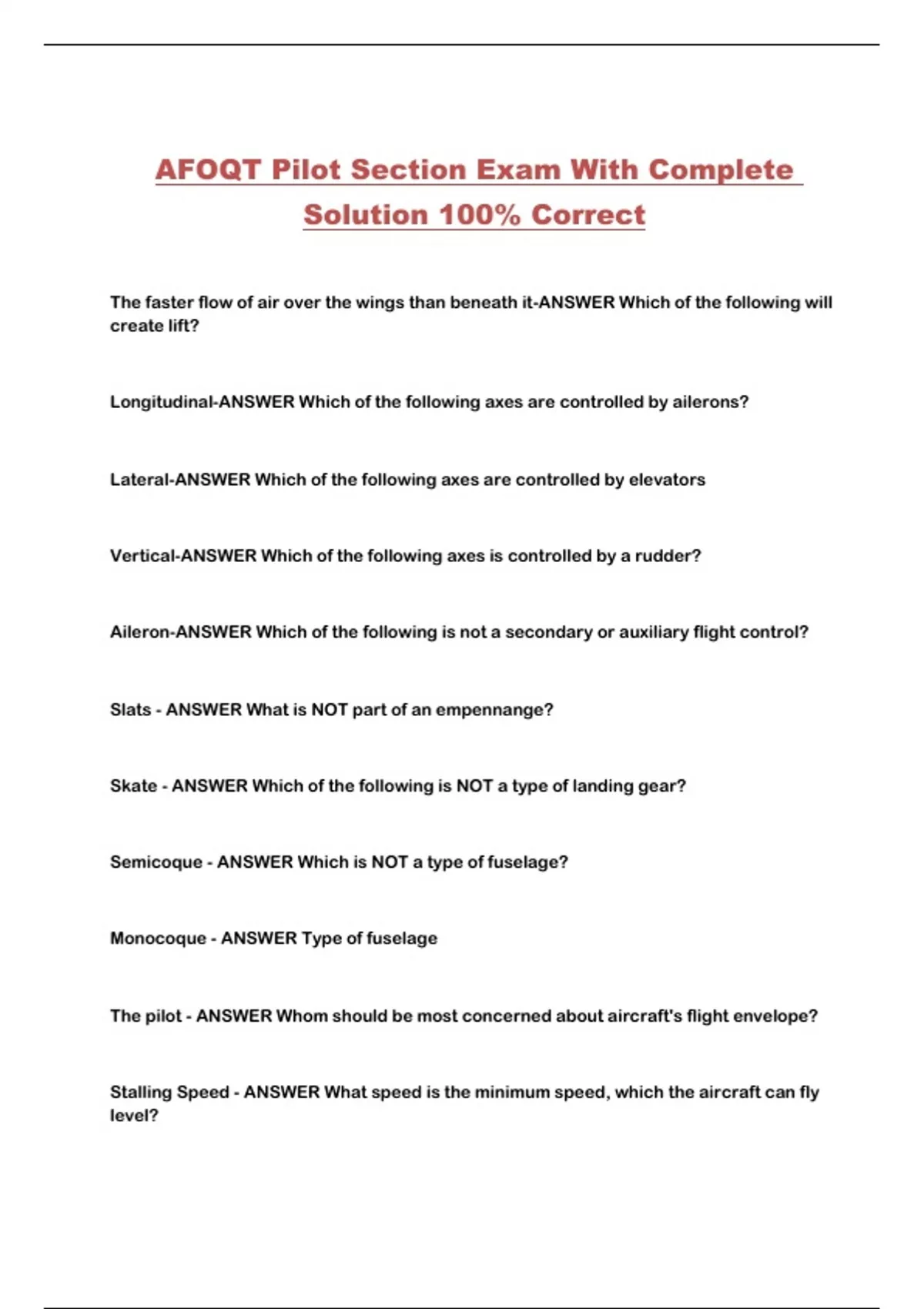 AFOQT Pilot Section Exam With Complete