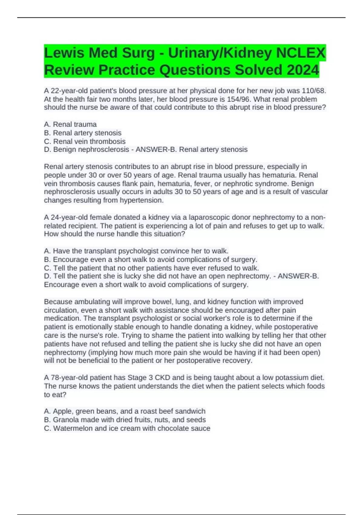 D. Benign nephrosclerosis - ANSWER-B. Renal artery stenosis