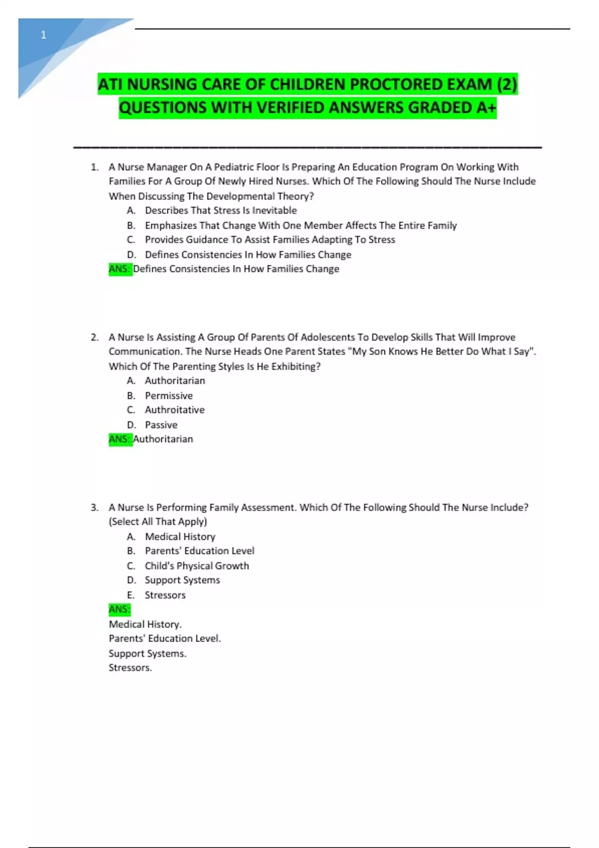 ATI NURSING CARE OF CHILDREN PROCTORED EXAM (2)
