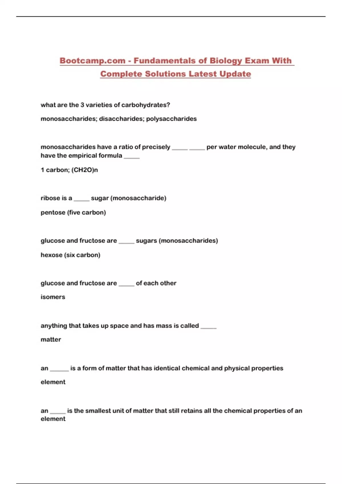 Bootcamp.com - Fundamentals of Biology Exam With Complete Solutions Latest Update
