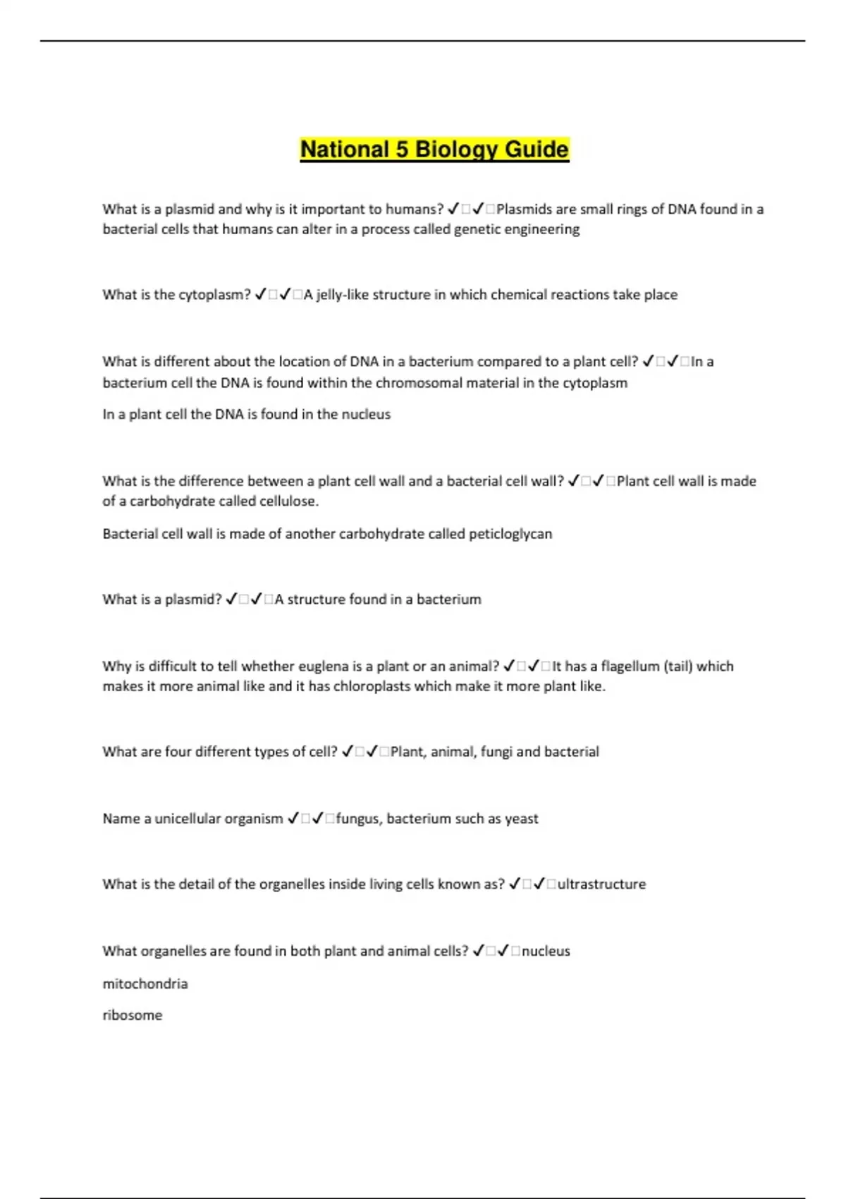 What are four different types of cell? ✔️✔️Plant, animal, fungi and bacterial