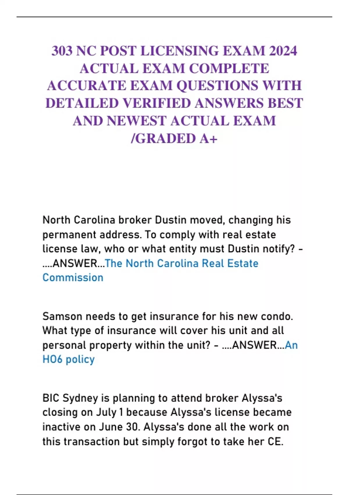 ACCURATE EXAM QUESTIONS WITH