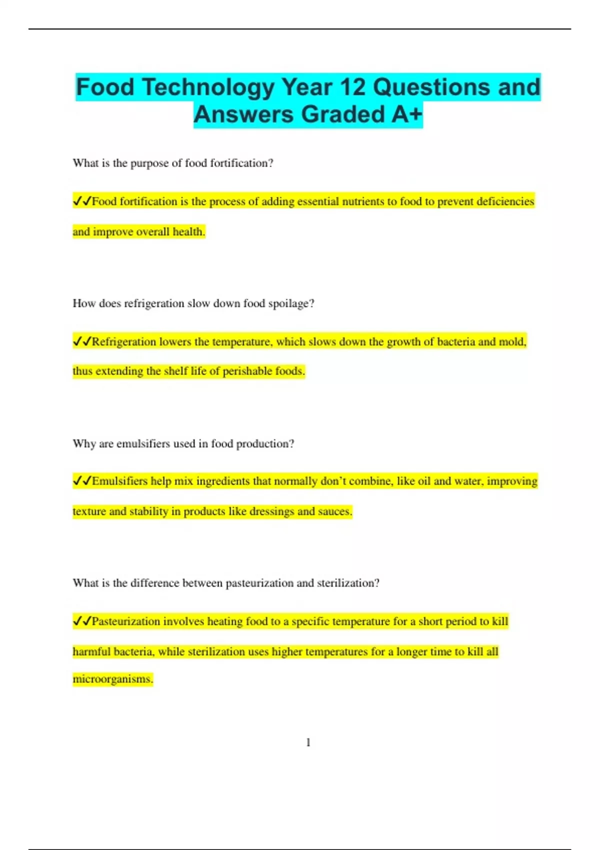 Food Technology Year 12 Questions and Answers Graded A+