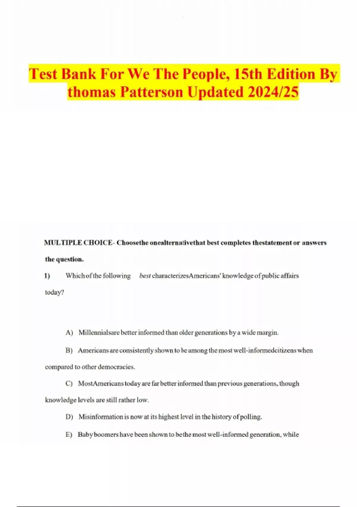 Test Bank For We The People, 15th Edition By thomas Patterson Updated 2024/25