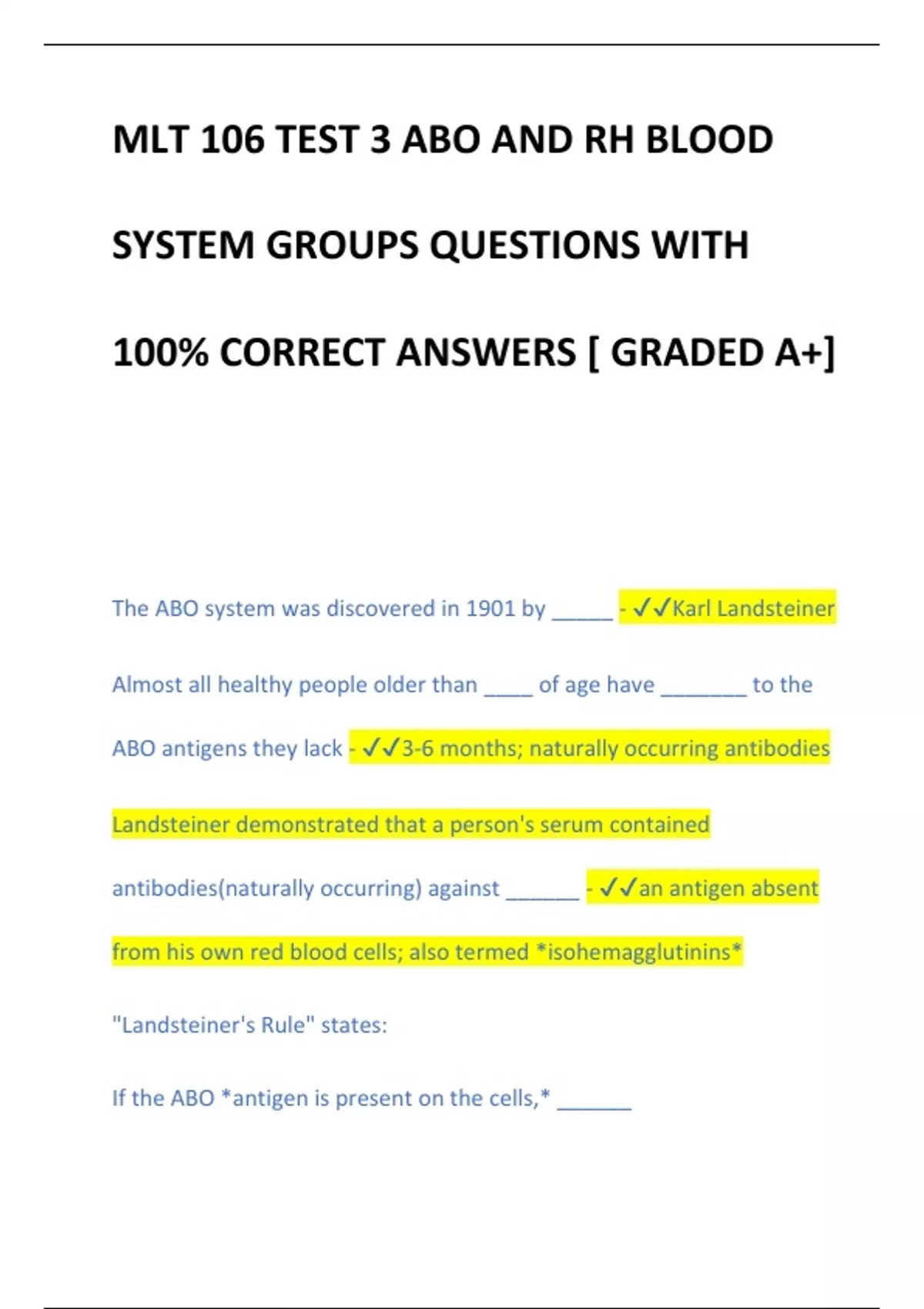 The ABO system was discovered in 1901 by _____ - ✔✔Karl Landsteiner