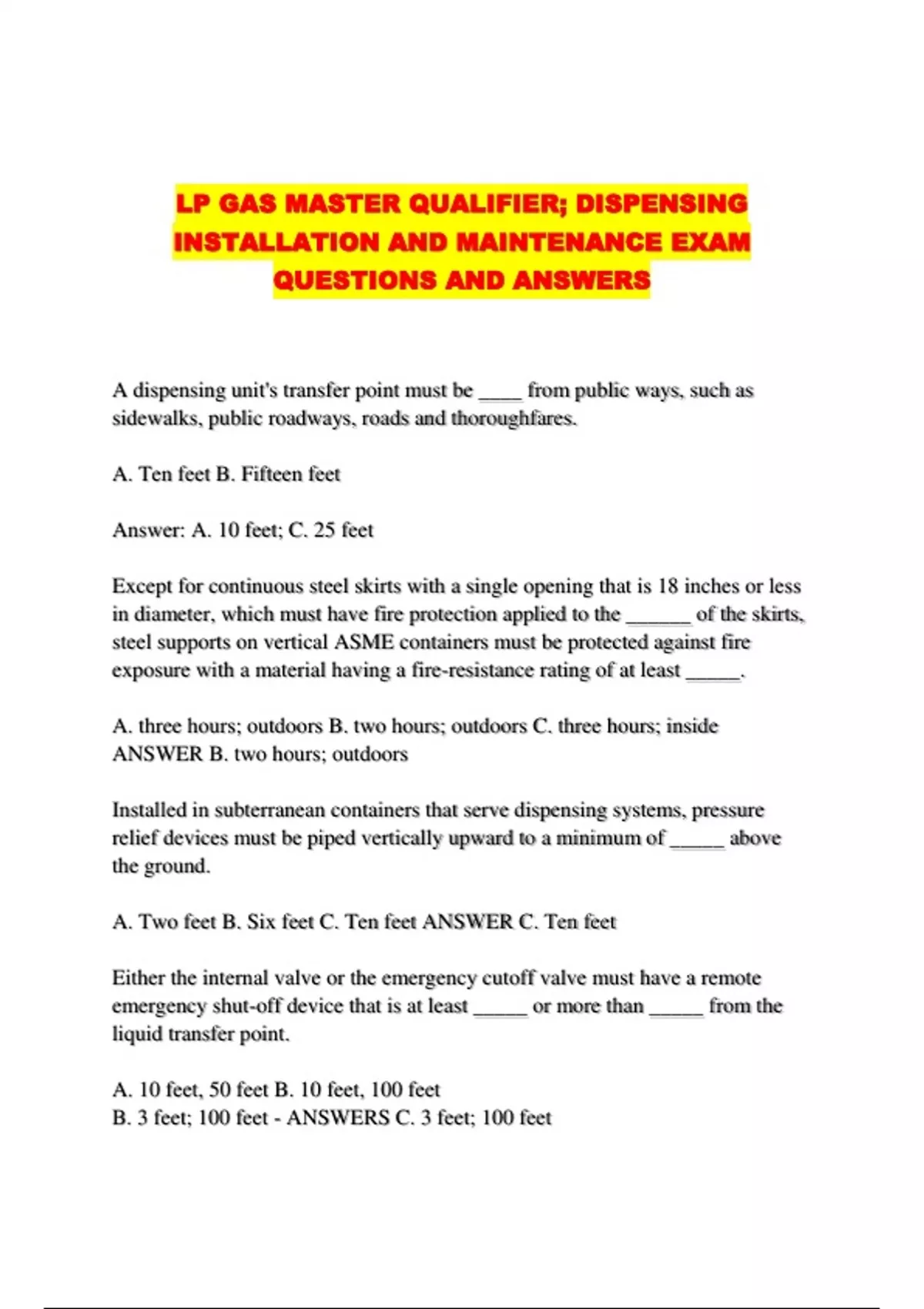 LP GAS MASTER QUALIFIER; DISPENSING INSTALLATION AND MAINTENANCE EXAM QUESTIONS AND ANSWERS...