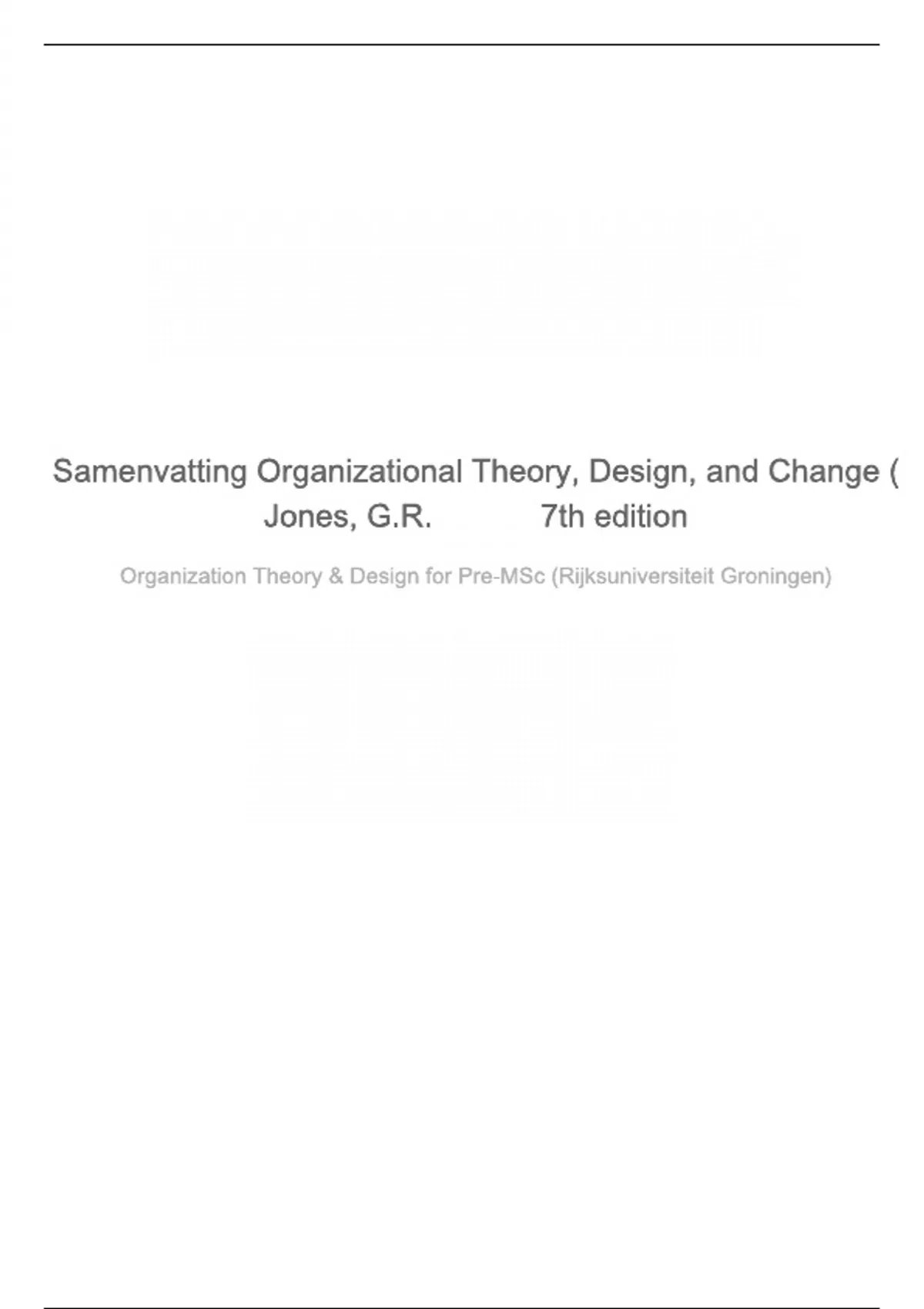 Samenvatting Organizational Theory, Design, and Change ( Jones, G.R. 2024), 7th edition. Met enkele slides erin verwerkt..pdf Organisatie en Technologie (EBP618B05)