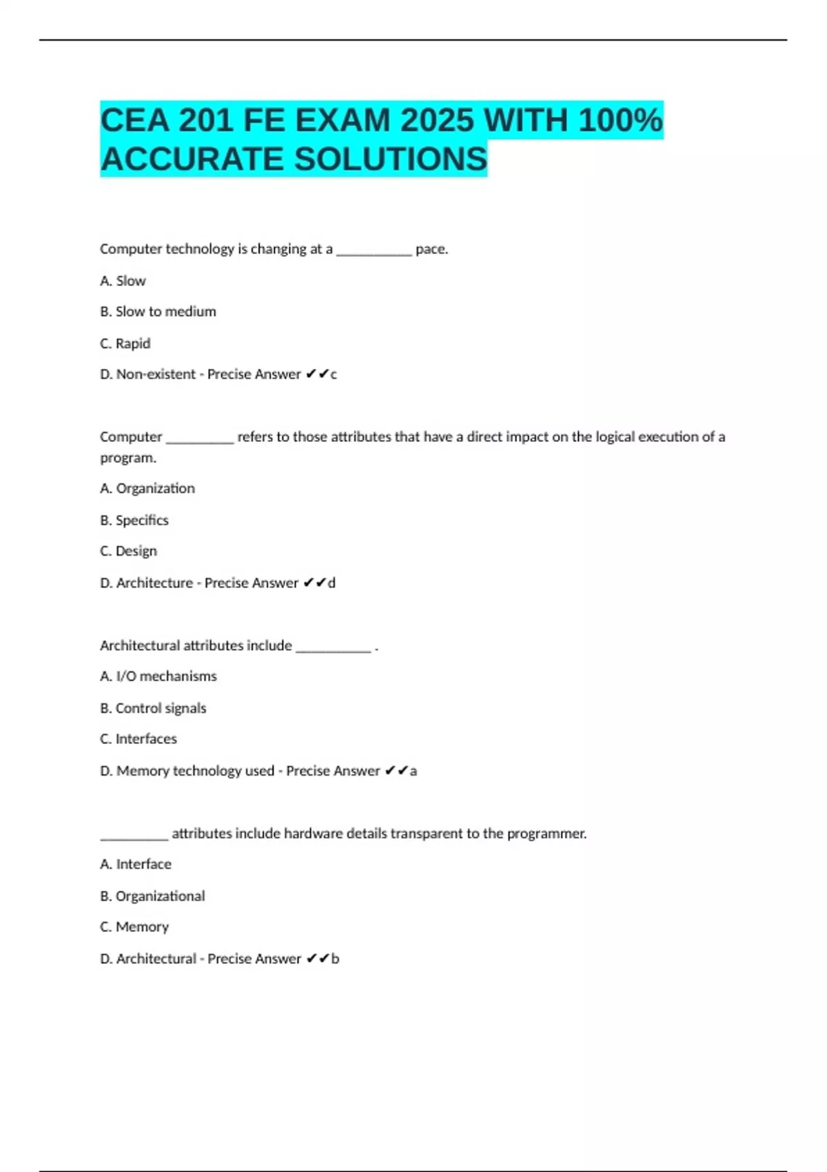 D. Architecture - Precise Answer ✔✔d