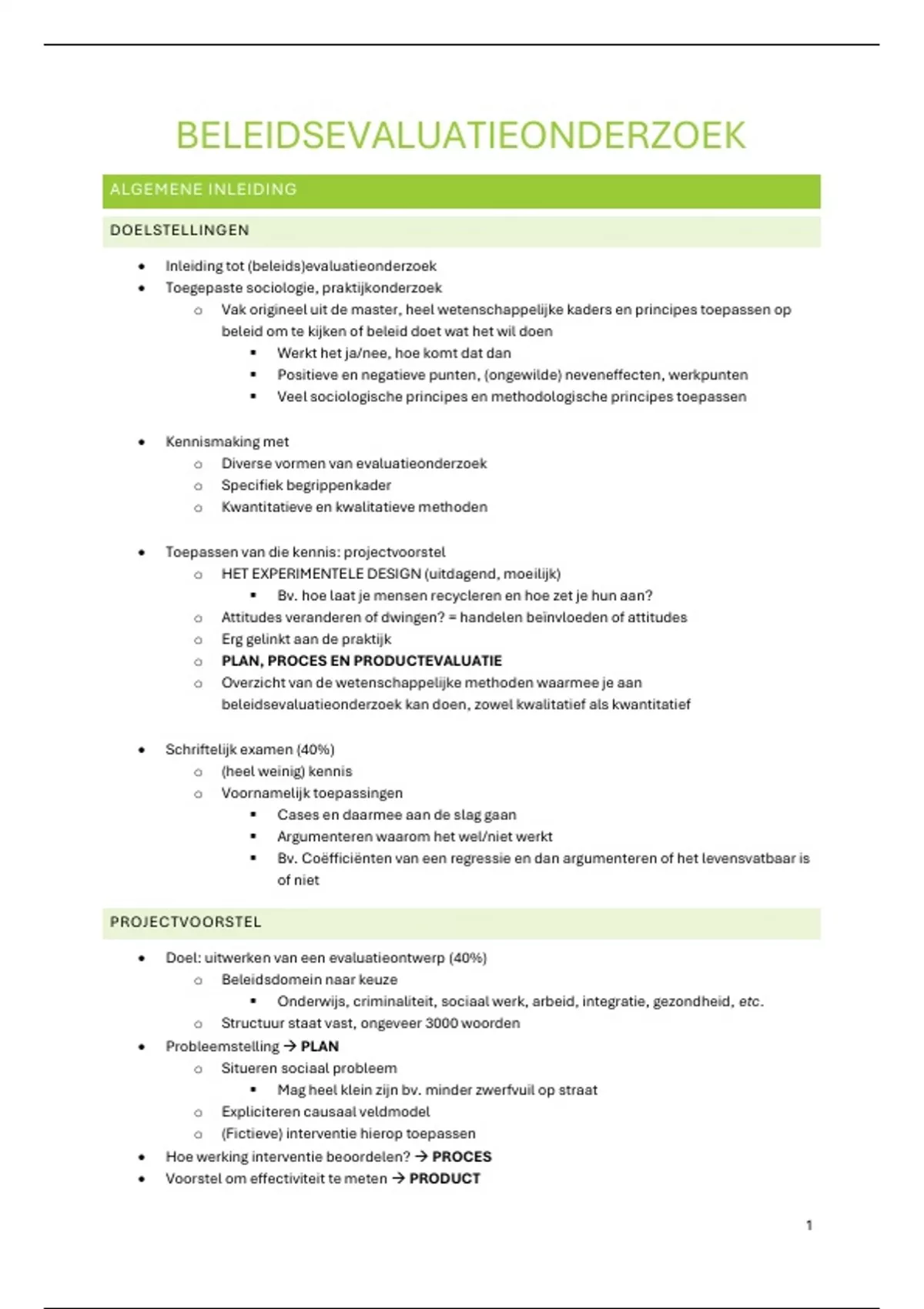 • Doel: uitwerken van een evaluatieontwerp (40%)