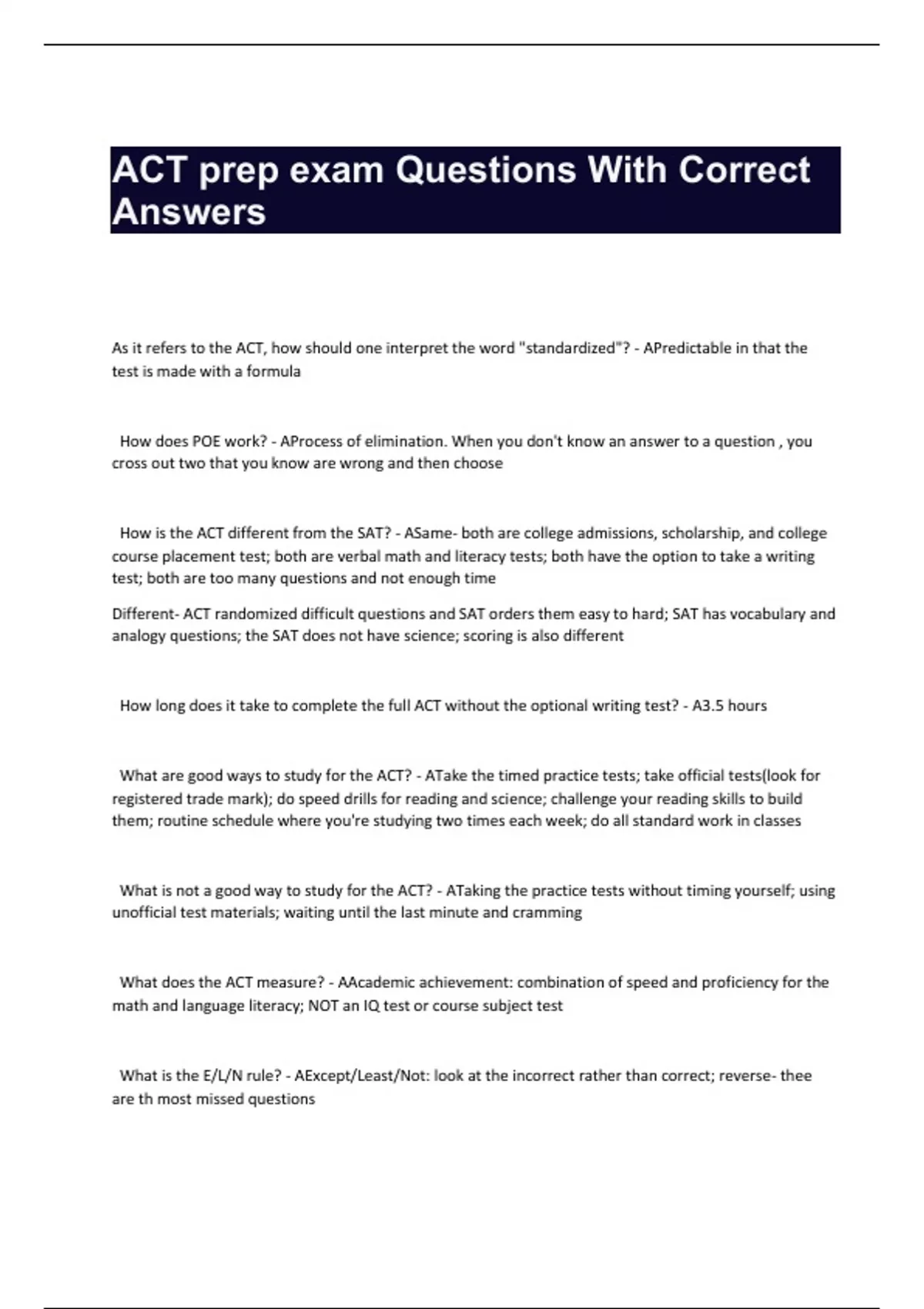 ACT prep exam Questions With Correct