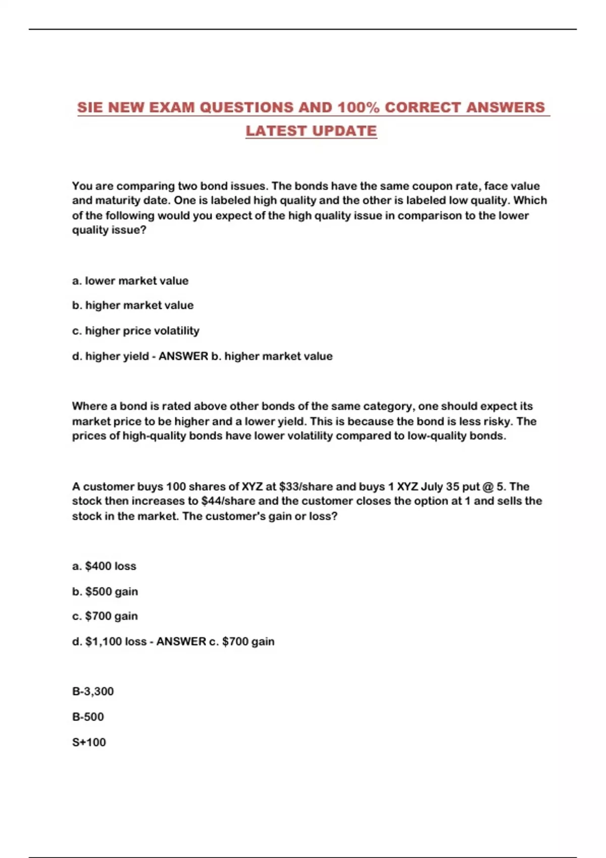 SIE NEW EXAM QUESTIONS AND 100% CORRECT ANSWERS