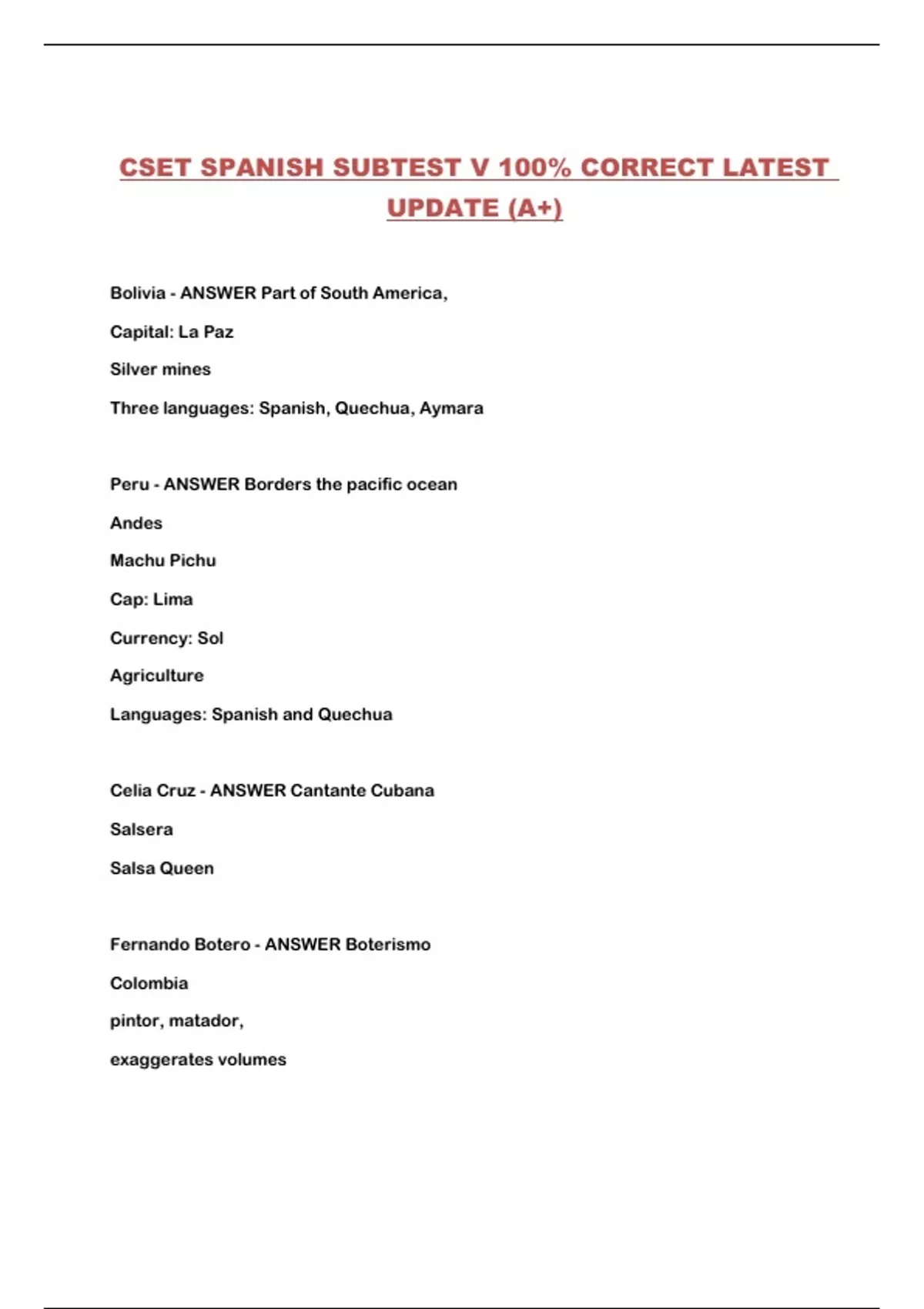 CSET SPANISH SUBTEST V 100% CORRECT LATEST