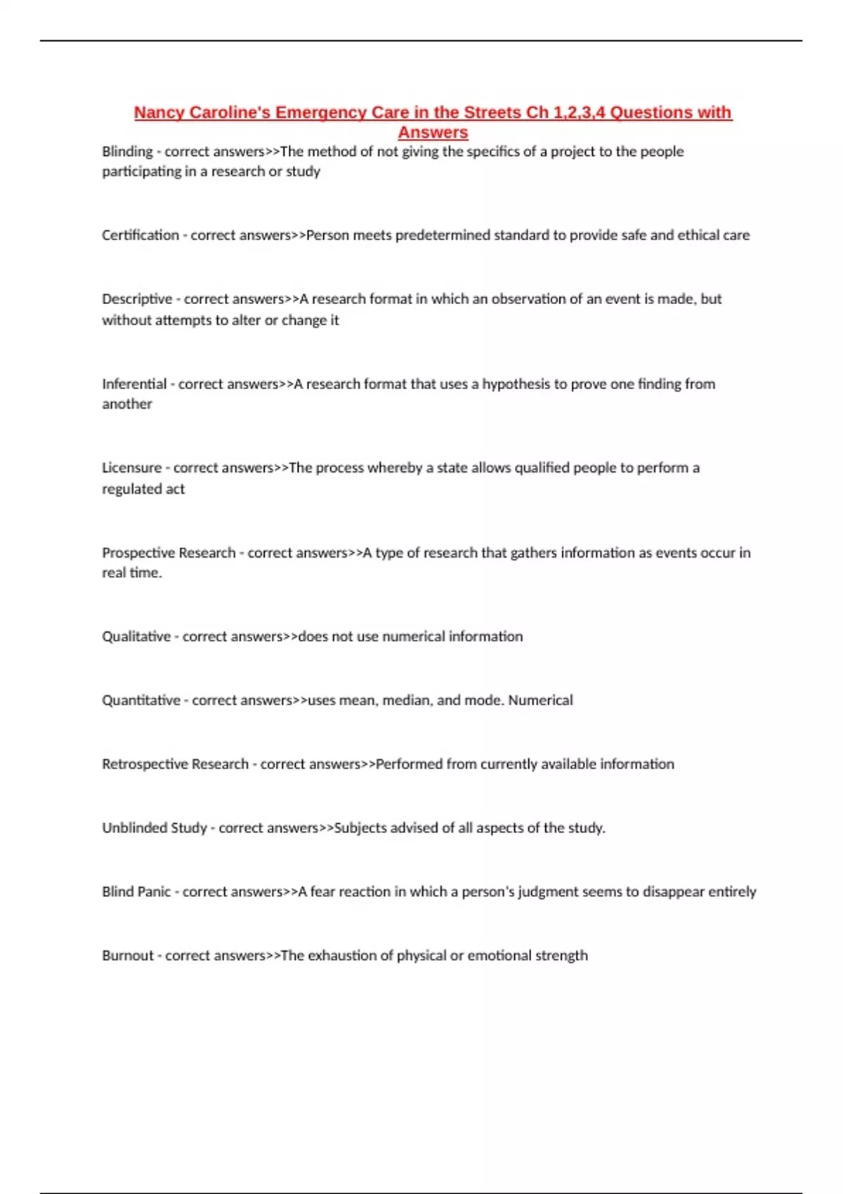 Retrospective Research - correct answers>>Performed from currently available information