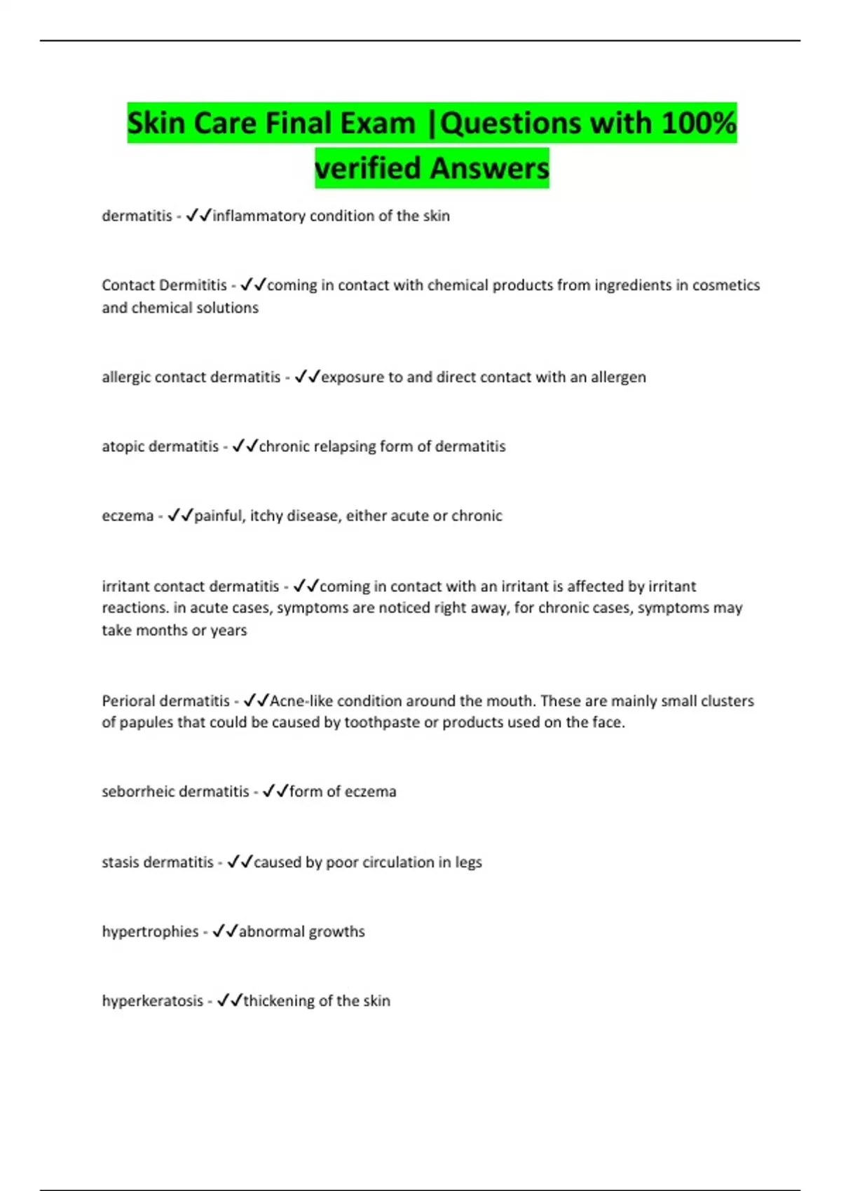 Skin Care Final Exam |Questions with 100%