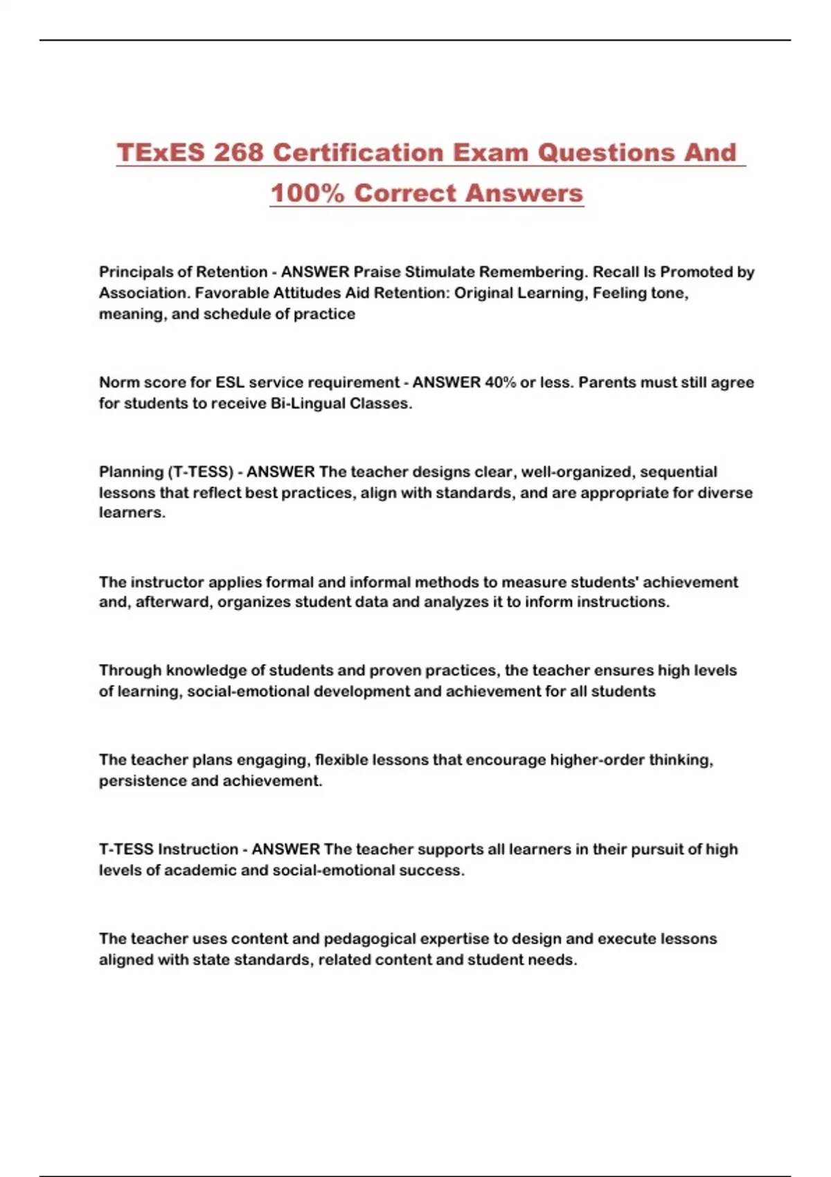 TExES 268 Certification Exam Questions And 100% Correct Answers...