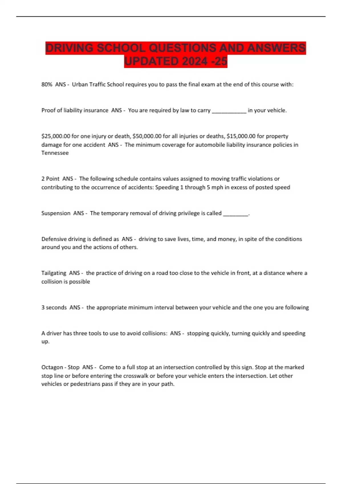 80% ANS - Urban Traffic School requires you to pass the final exam at the end of this course with: