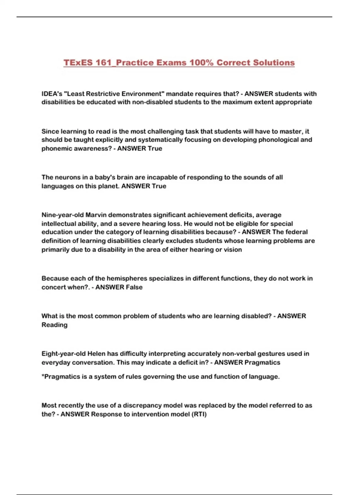 TExES 161_Practice Exams 100% Correct Solutions